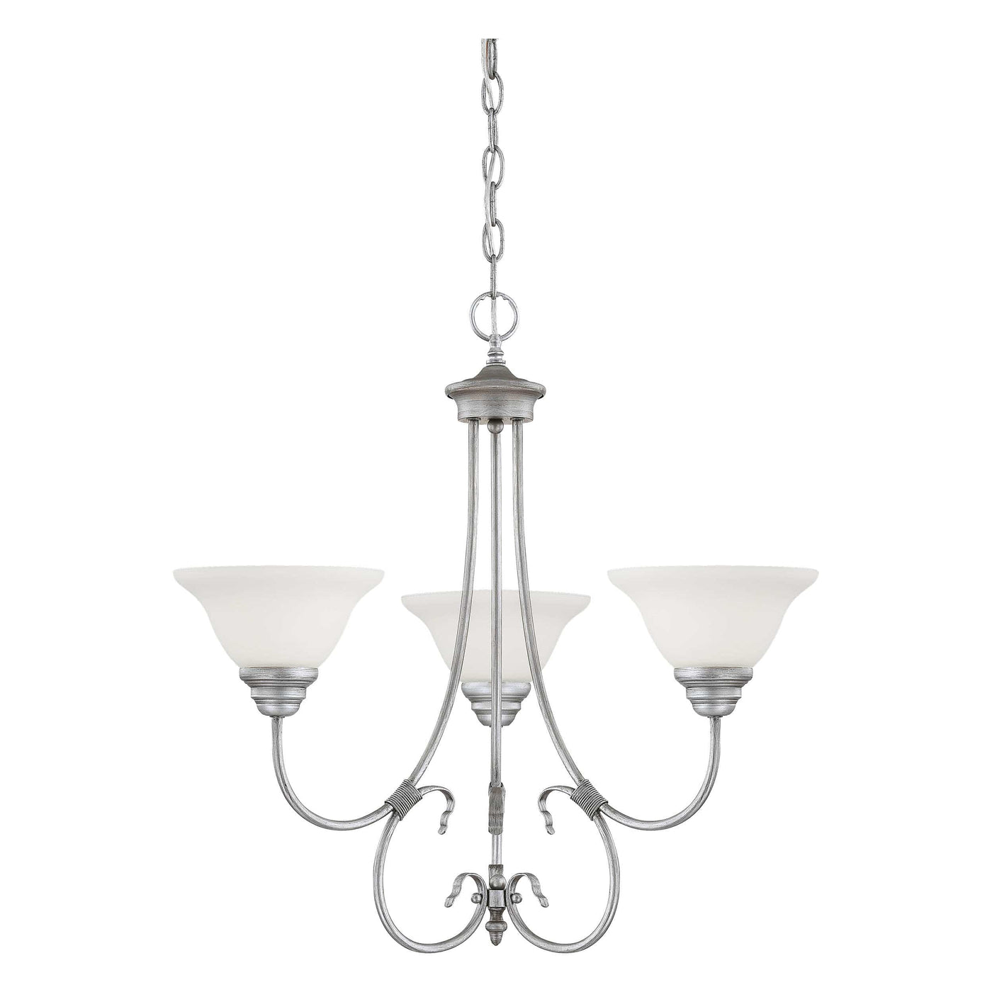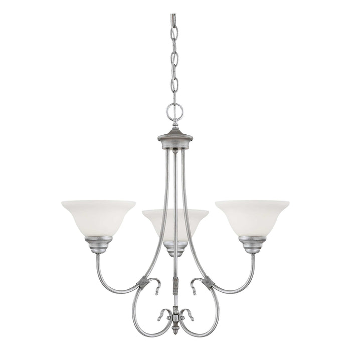 3 Lamps Fulton Chandelier - Rubbed Silver - Etched White Glass - 25in Diameter - E26 Medium Base
