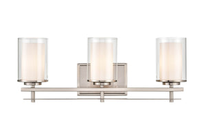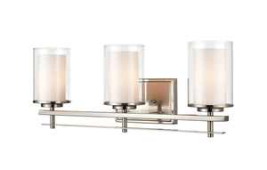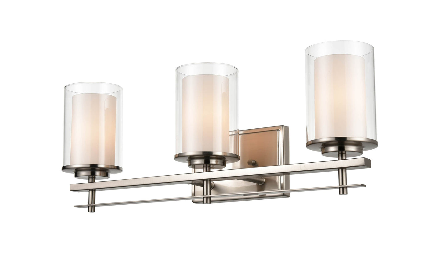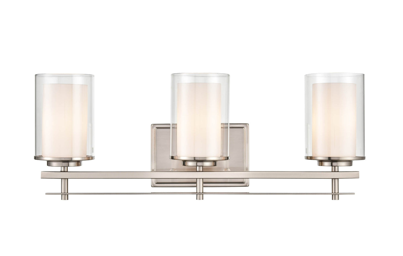 3 Lamps Huderson Vanity Light - Brushed Nickel - Clear Out / Etched White Inside Glass - 23in. Wide