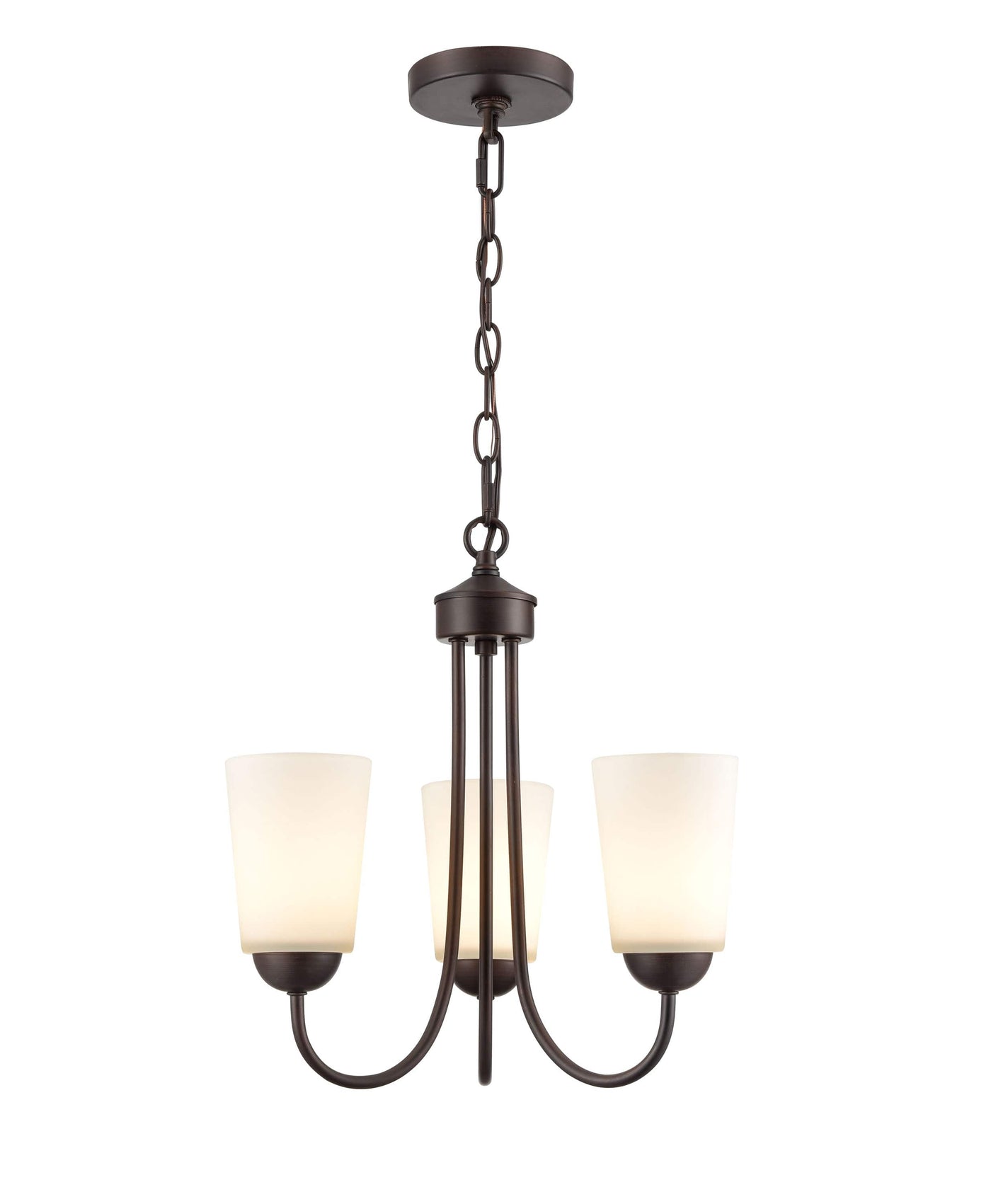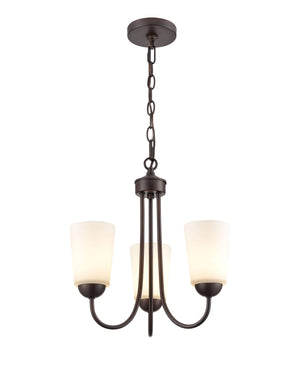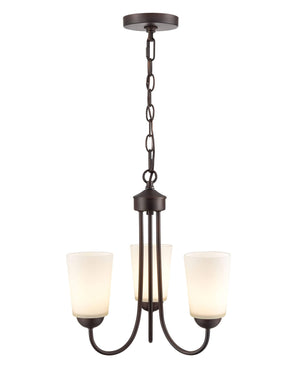 3 Lamps Ivey Lake Chandelier - Rubbed Bronze - Etched White Glass - 15in Diameter - E26 Medium Base