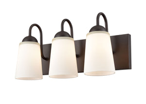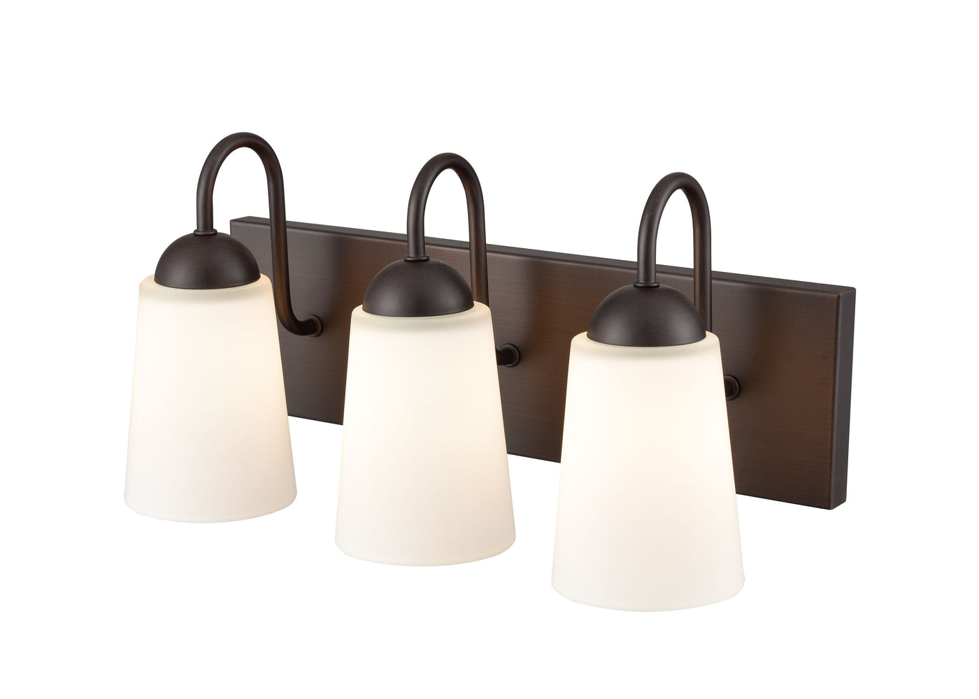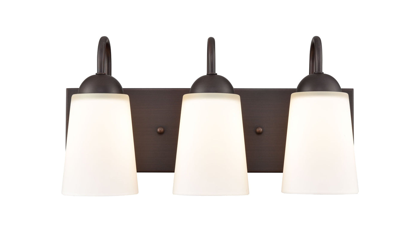 3 Lamps Ivey Lake Vanity Light - Rubbed Bronze - Etched White Glass - 16in. Wide