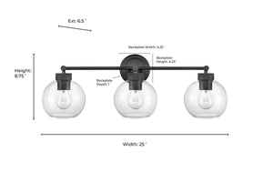 3 Lamps Jonatan Vanity Light - Matte Black - Clear Glass - 25in. Wide