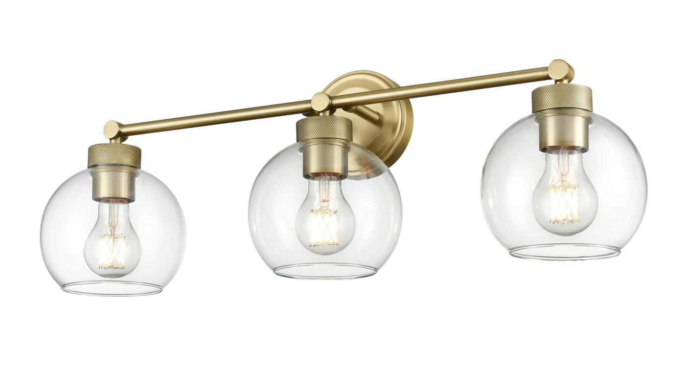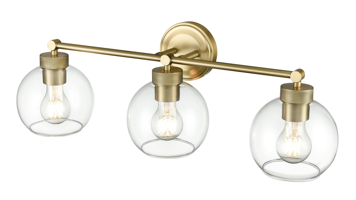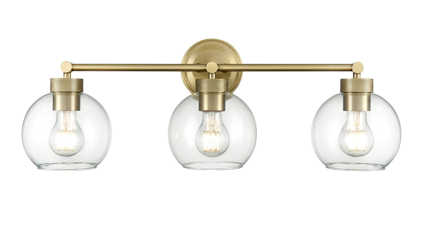 3 Lamps Jonatan Vanity Light - Vintage Brass - Clear Glass - 25in. Wide