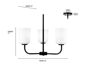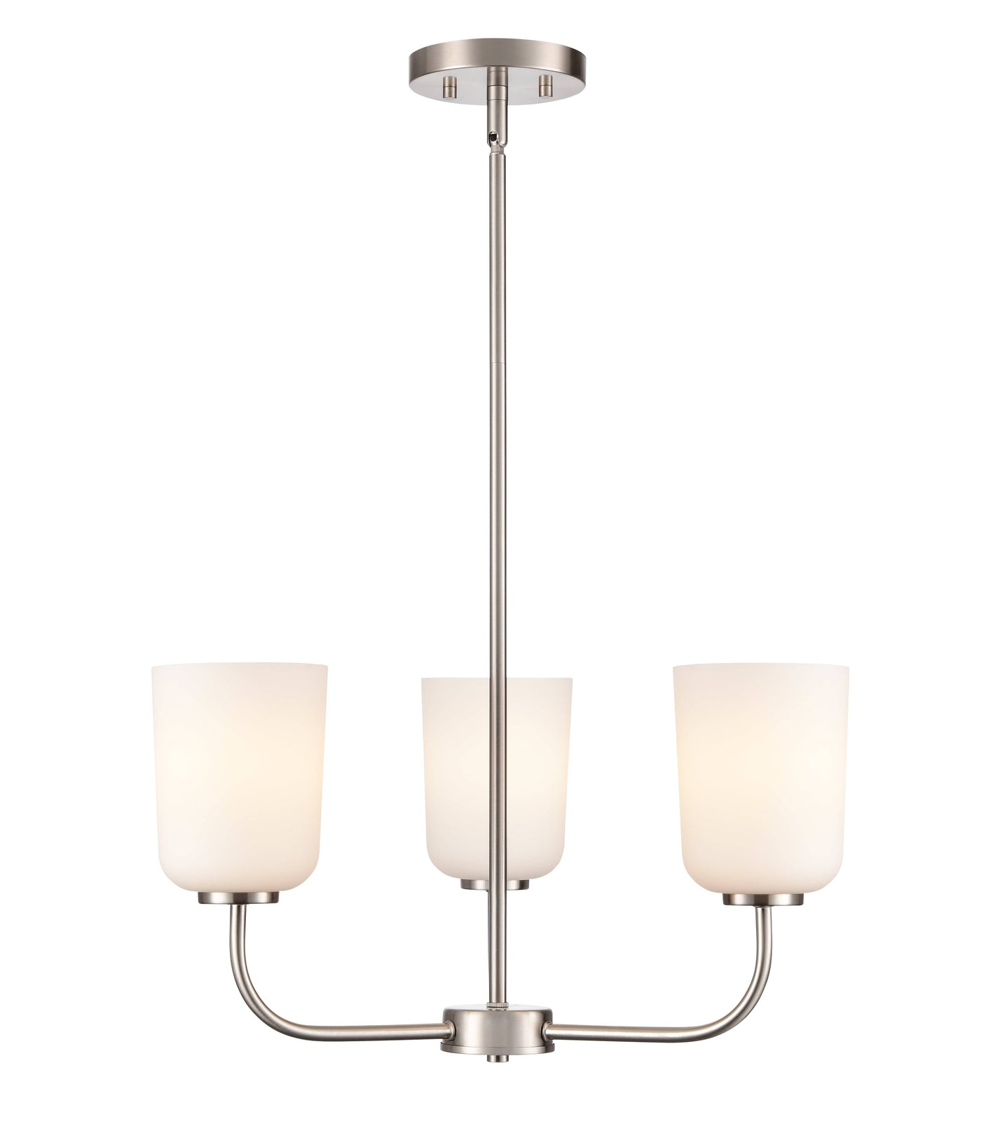 3 Lamps Laphia Chandelier - Brushed Nickel - Etched Opal Glass - 21in Diameter - E26 Medium Base