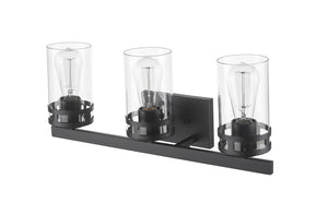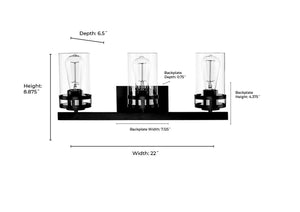 3 Lamps Lunden Vanity Light - Matte Black - Clear Glass - 22in. Wide