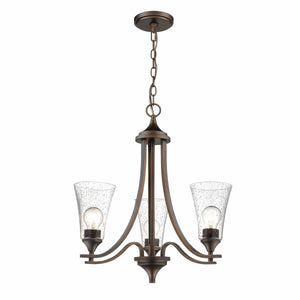 3 Lamps Natalie Chandelier - Rubbed Bronze - Clear Seeded Glass - 23in Diameter - E26 Medium Base
