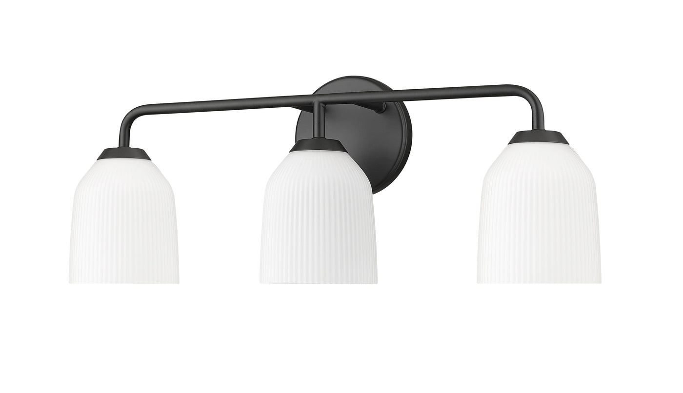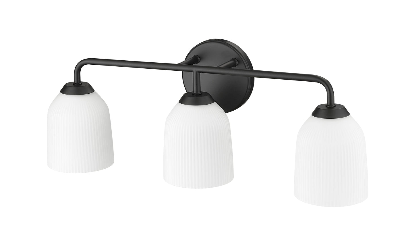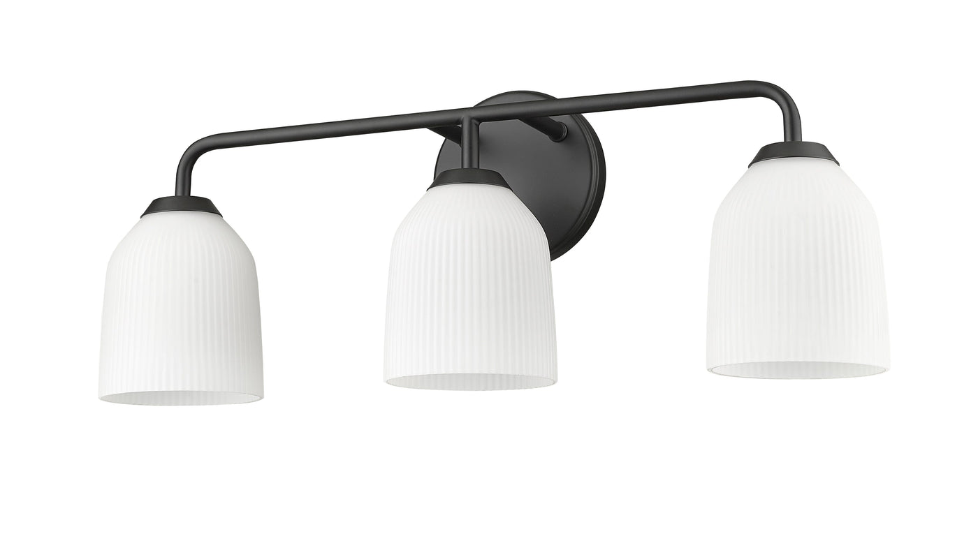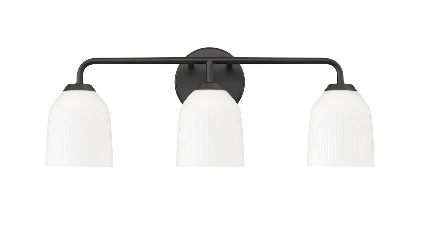 3 Lamps Norah Vanity Light - Matte Black - Opal Ribbed Glass - 22.8in. Wide