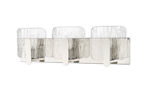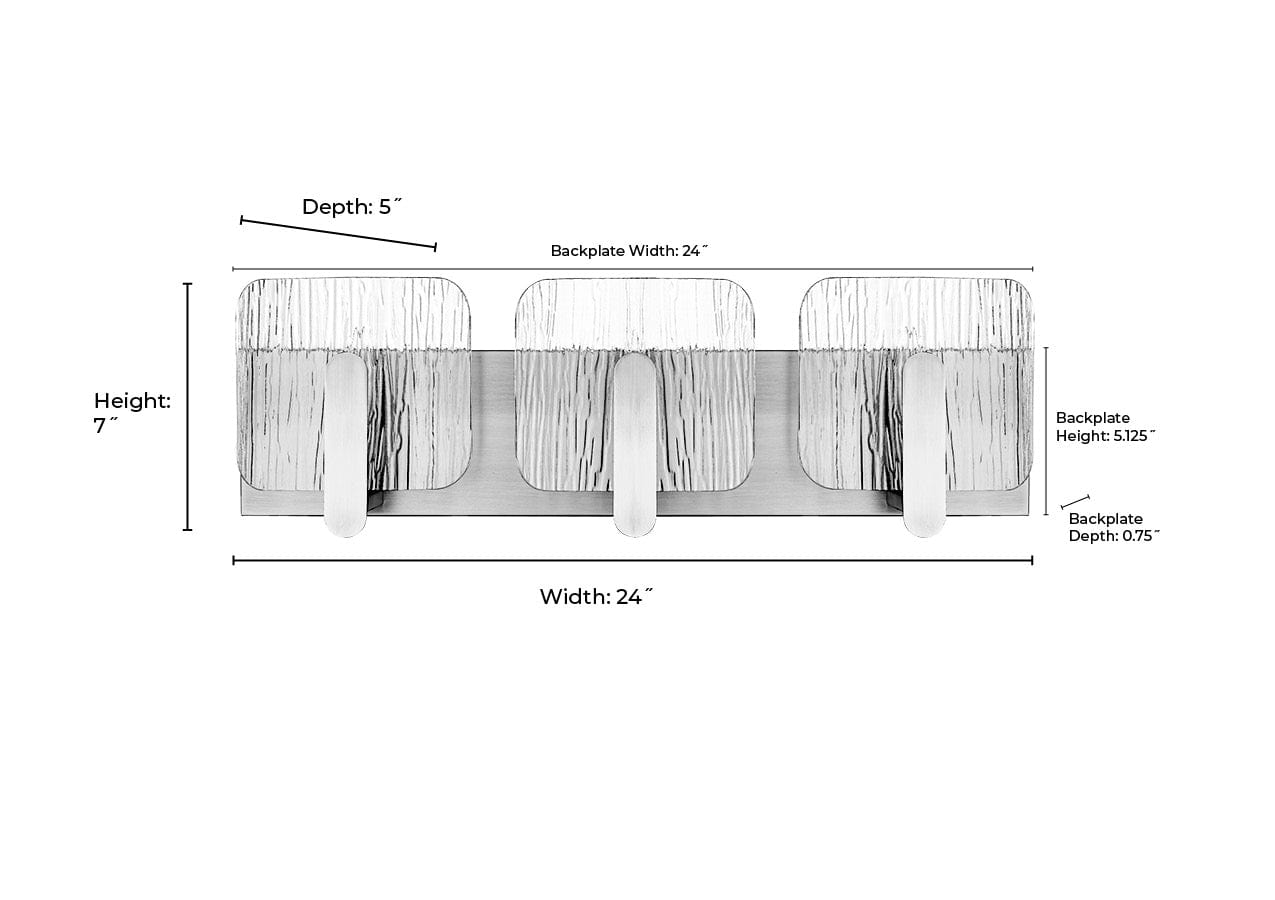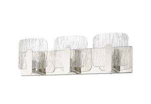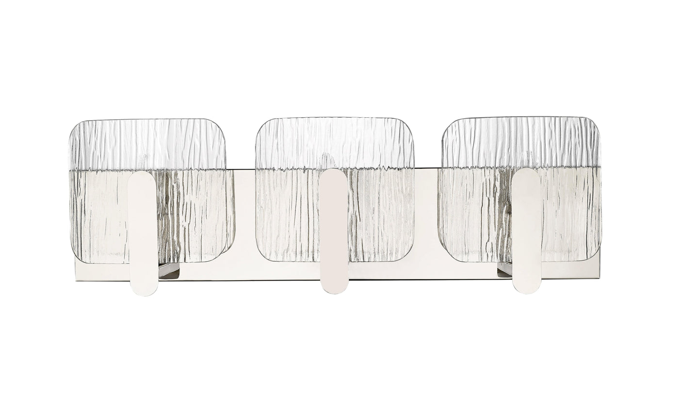 3 Lamps Rimini Vanity Light - Polished Nickel - Clear Textured Glass - 24in. Wide