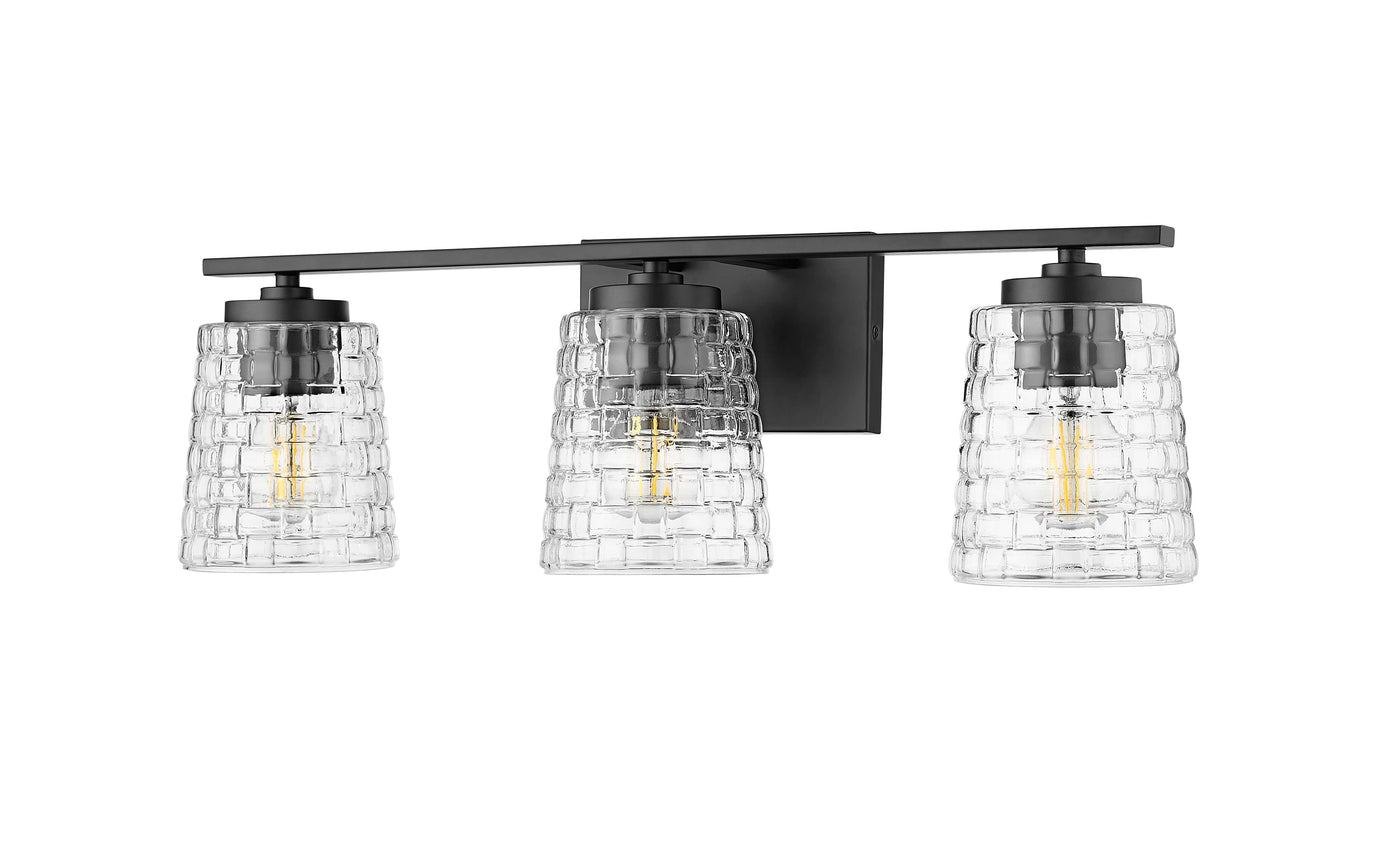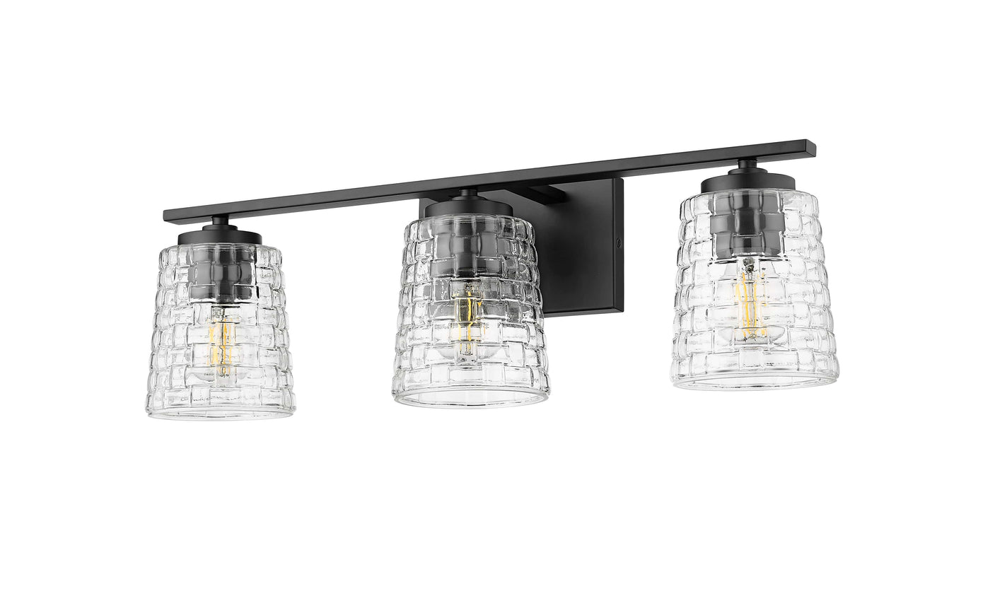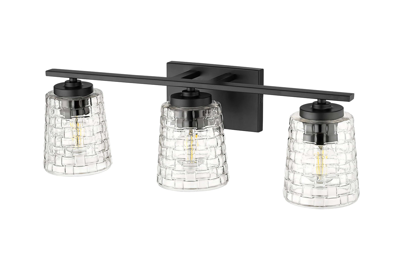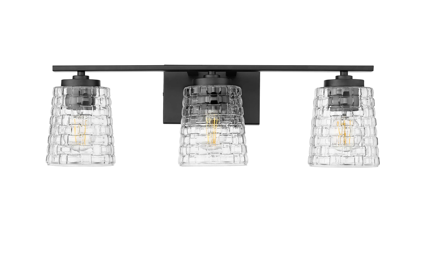 3 Lamps Saben Vanity Light - Matte Black - Clear Woven Glass - 23in. Wide