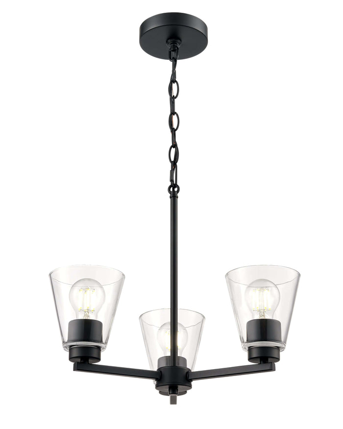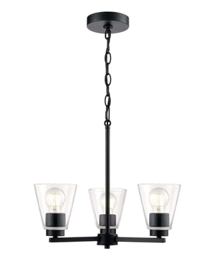 3 Lamps Strayhan Chandelier - Matte Black - Clear Glass - 18in Diameter - E26 Medium Base