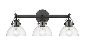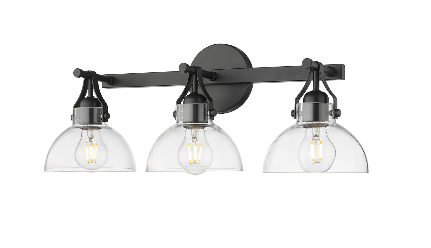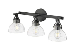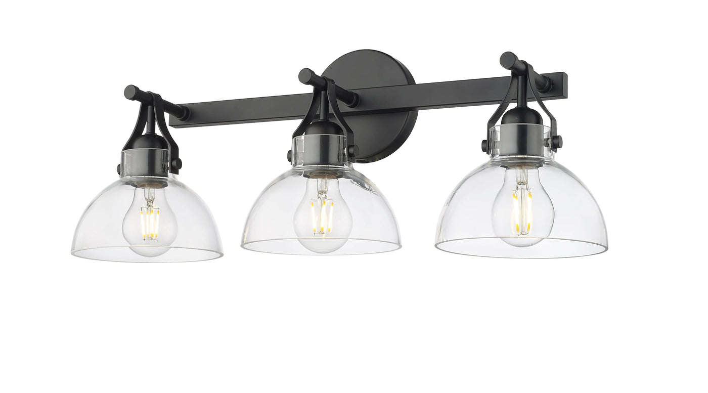 3 Lamps Vanity Light - Matte Black - Clear Glass - 23in. Wide