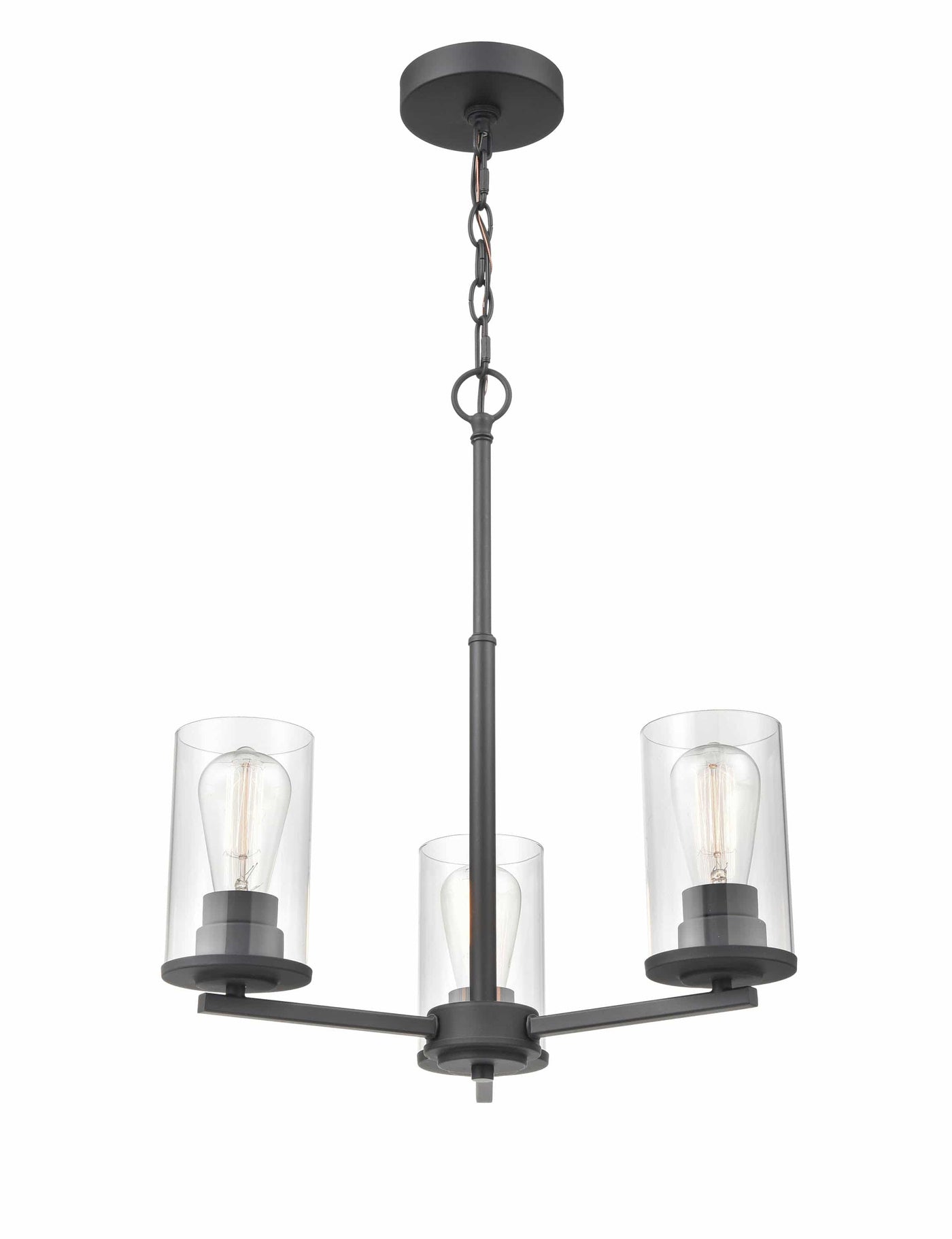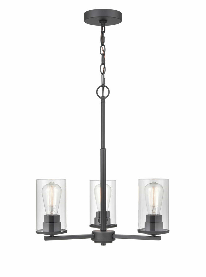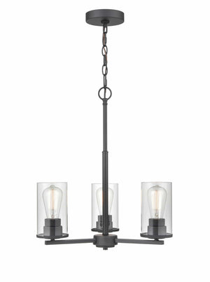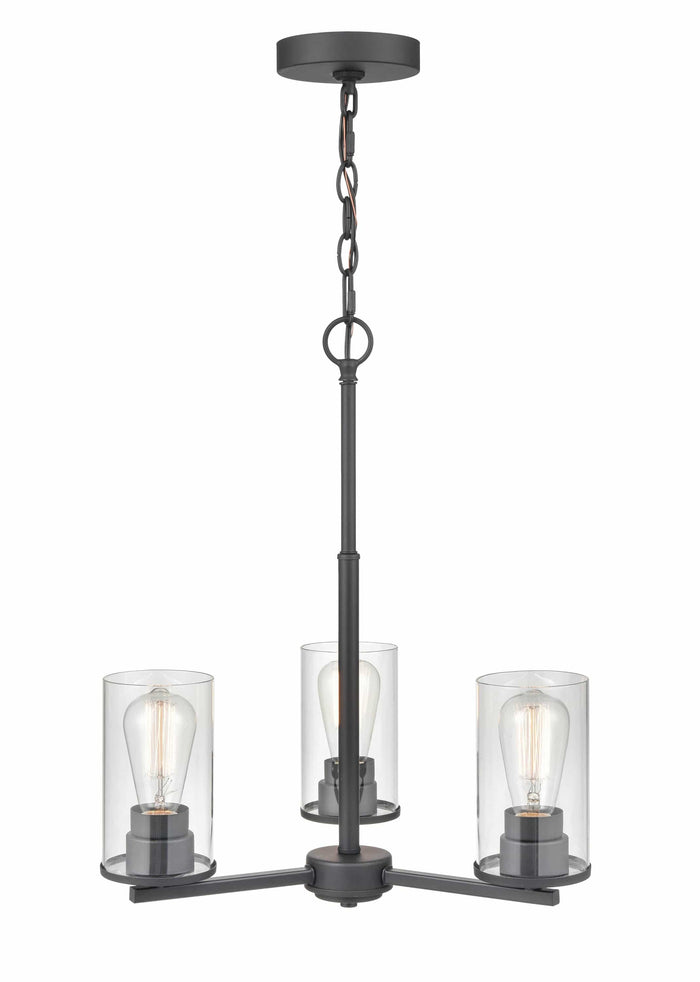 3 Lamps Verlana Chandelier - Matte Black - Clear Glass - 19in Diameter - E26 Medium Base