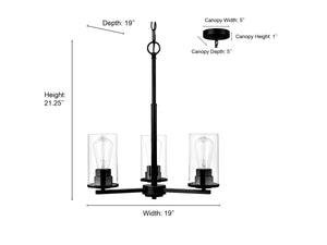 3 Lamps Verlana Chandelier - Modern Gold - Clear Glass - 19in Diameter - E26 Medium Base
