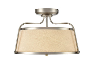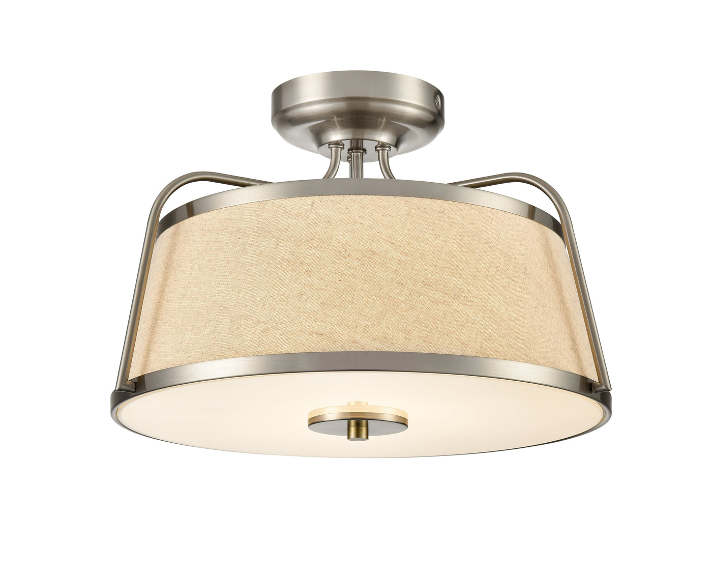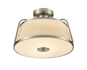 35W LED Semi-Flush Mount Fixture - Brushed Nickel - Natural Linen - 15.13in. Diameter - 1400 Lm