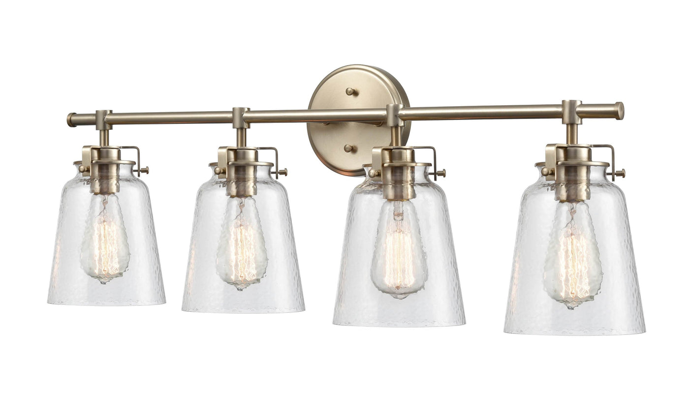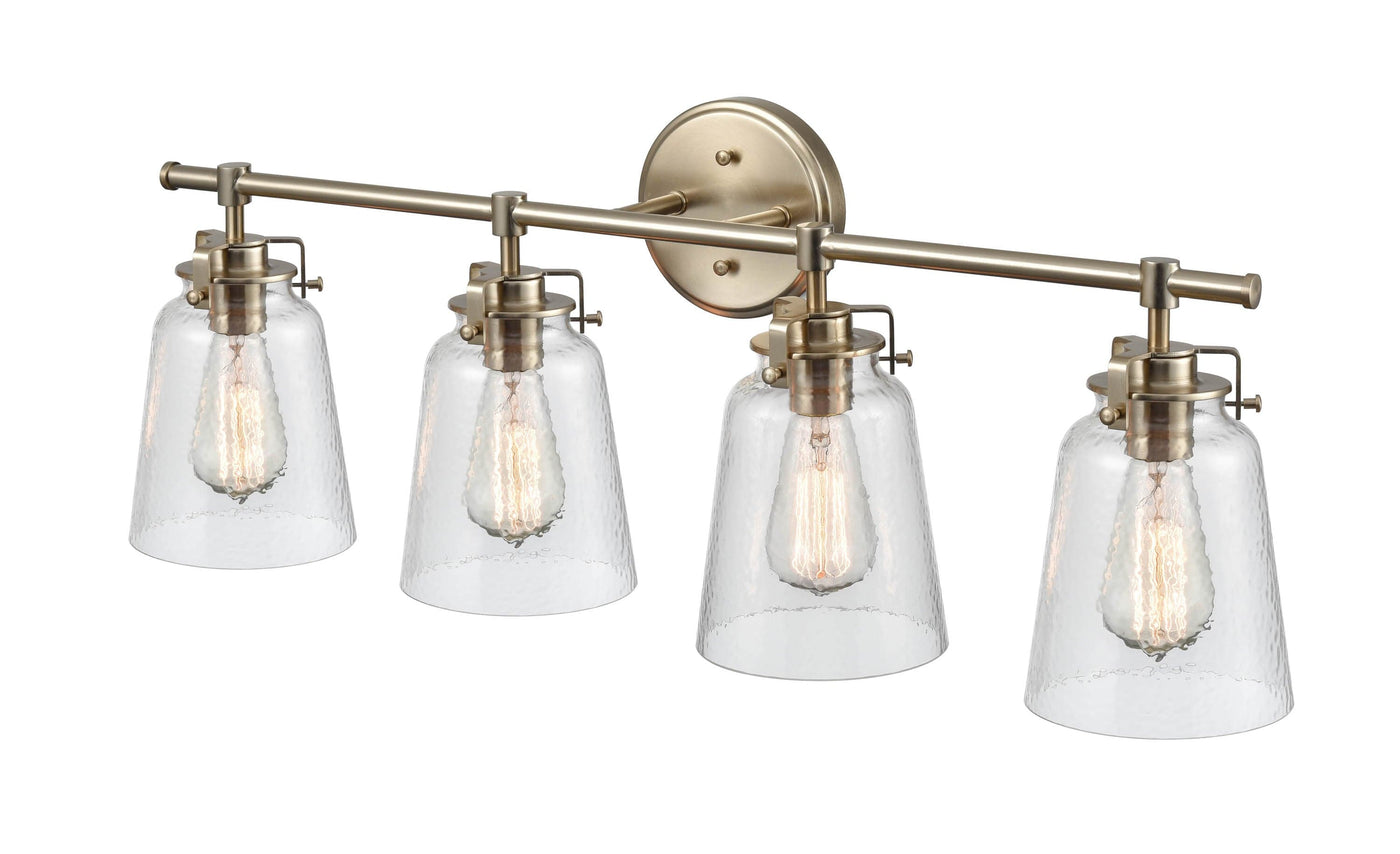 4 Lamps Amberose Vanity Light - Modern Gold - Hammered Glass - 31.25in. Wide