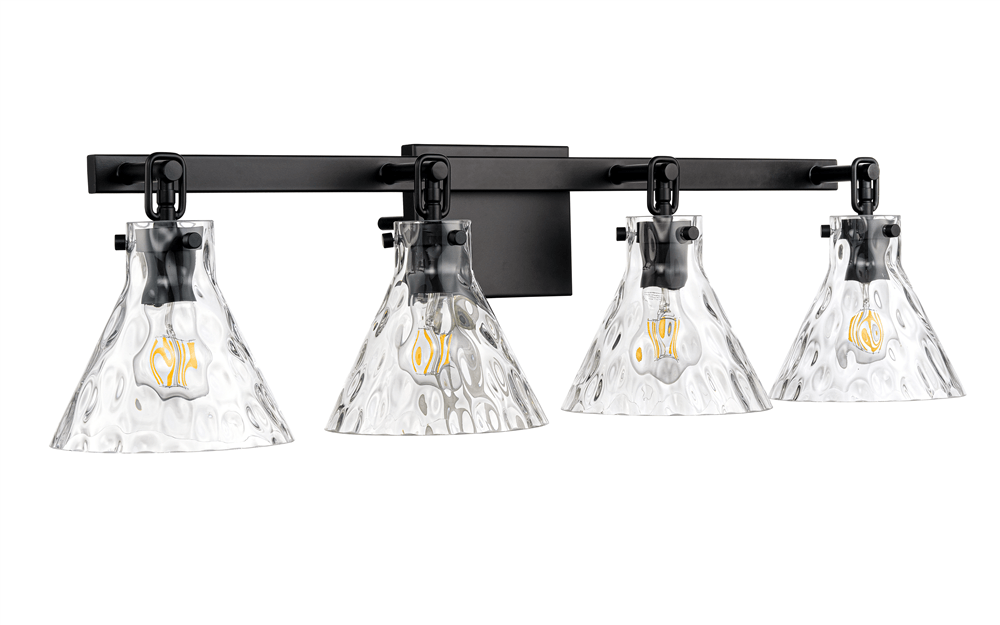 4 Lamps Barlon Vanity Light - Matte Black - Clear Water Glass - 34.75in. Wide
