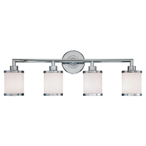 4 Lamps Bathroom Vanity Light - Chrome - Etched White Glass - 30.5in. Wide