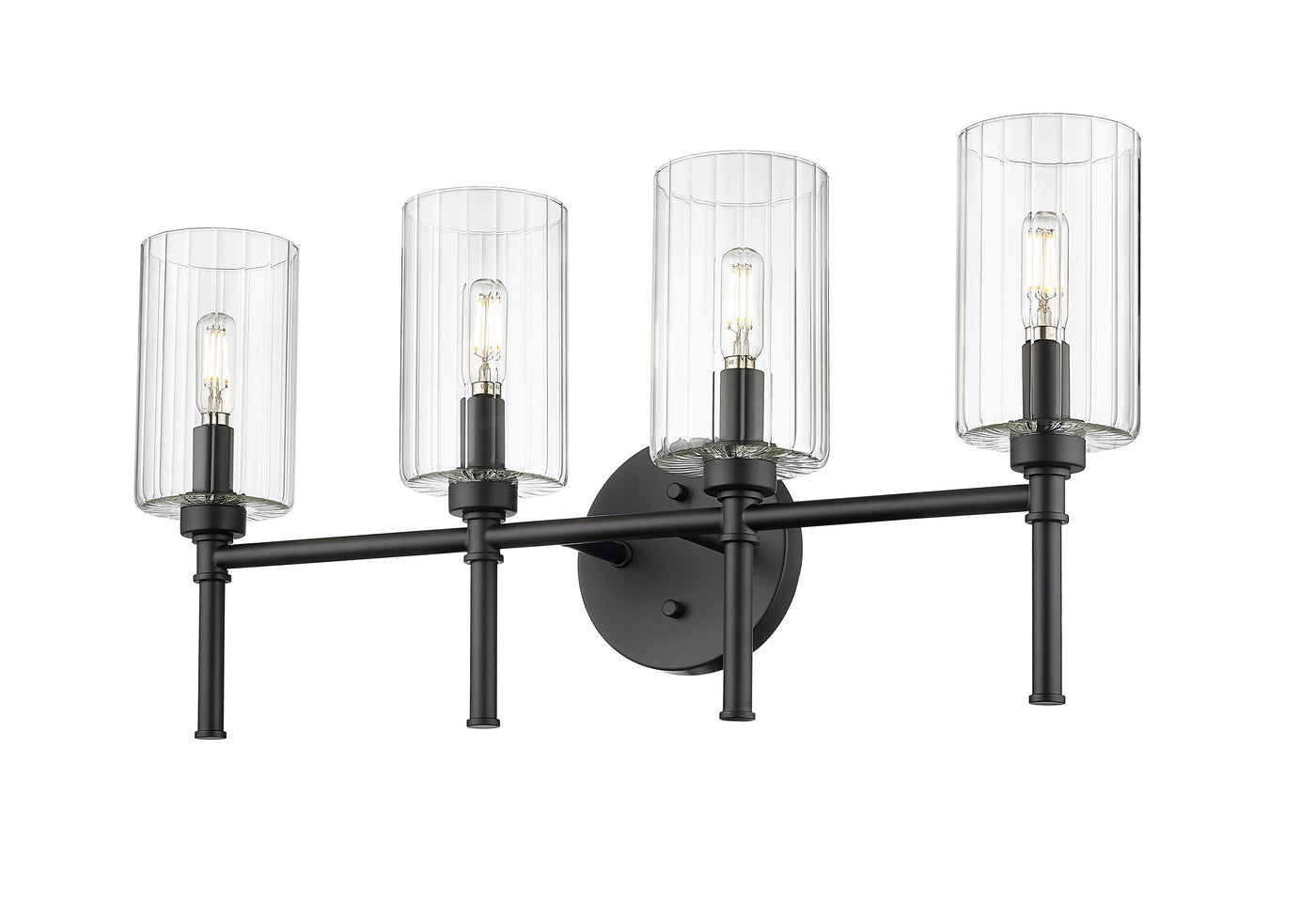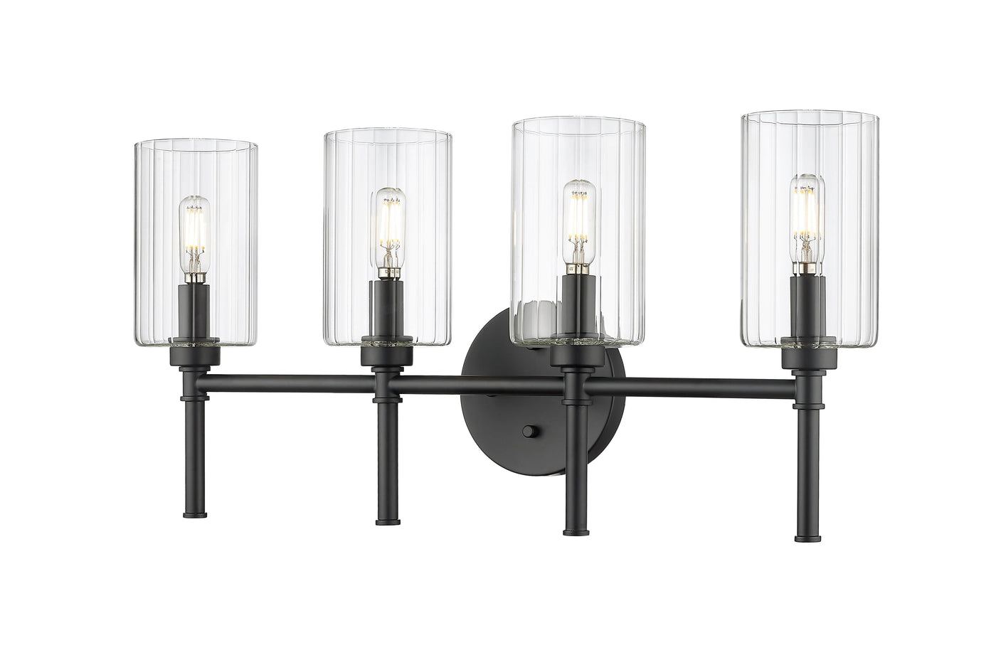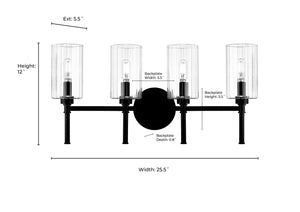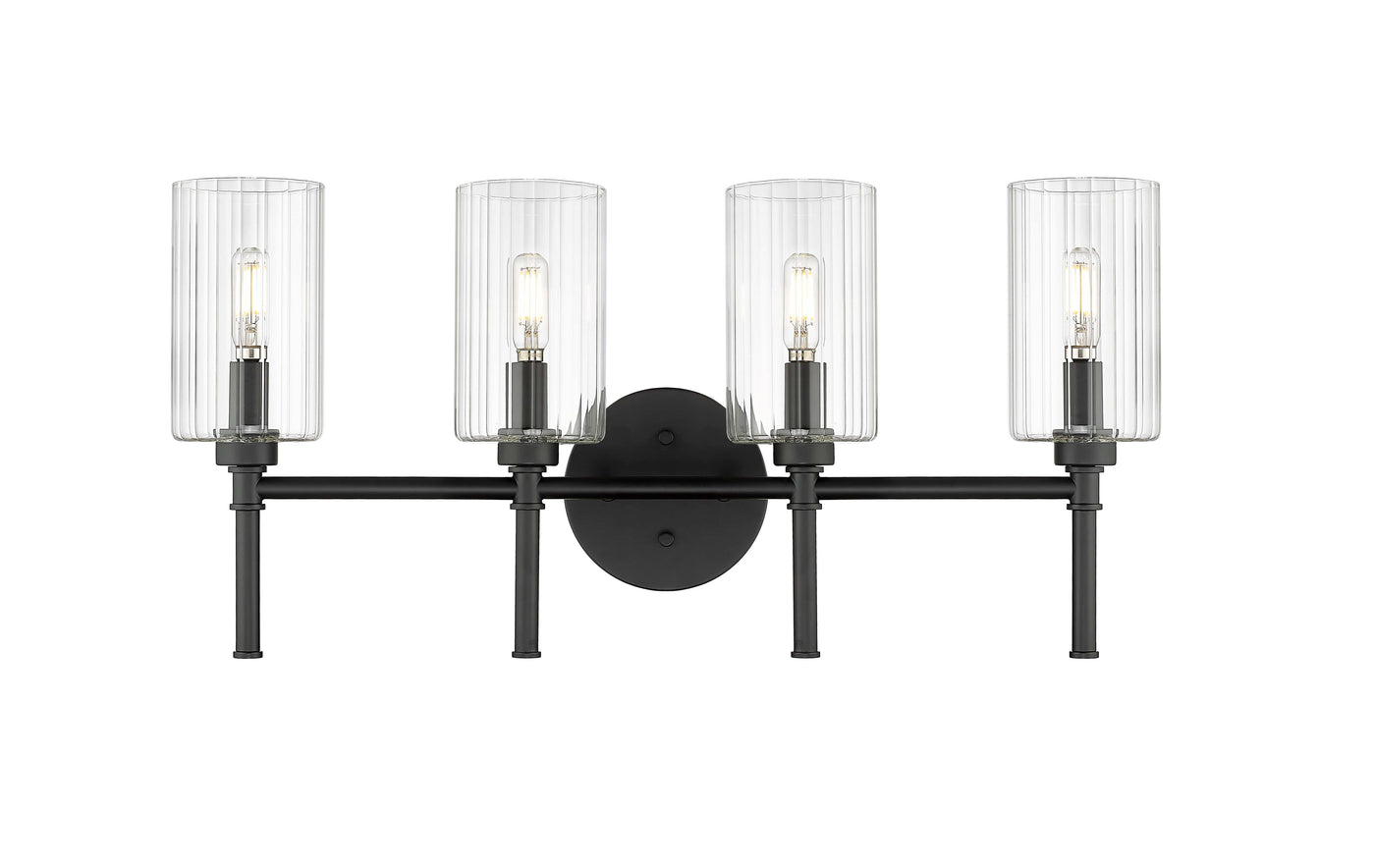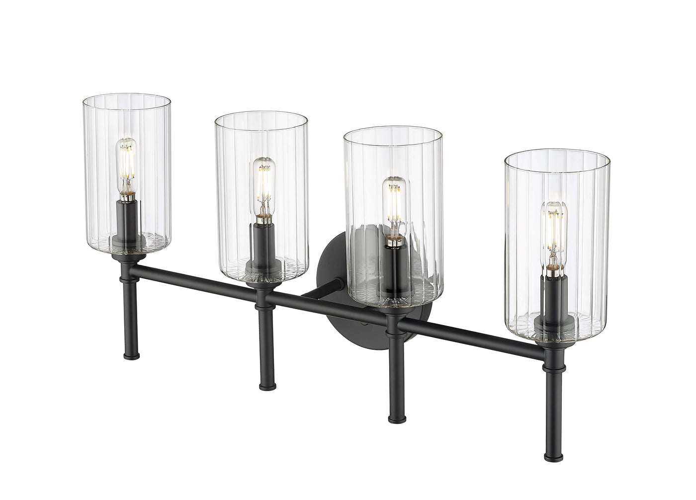4 Lamps Chastine Vanity Light - Matte Black - Clear Beveled Glass - 25.5in. Wide