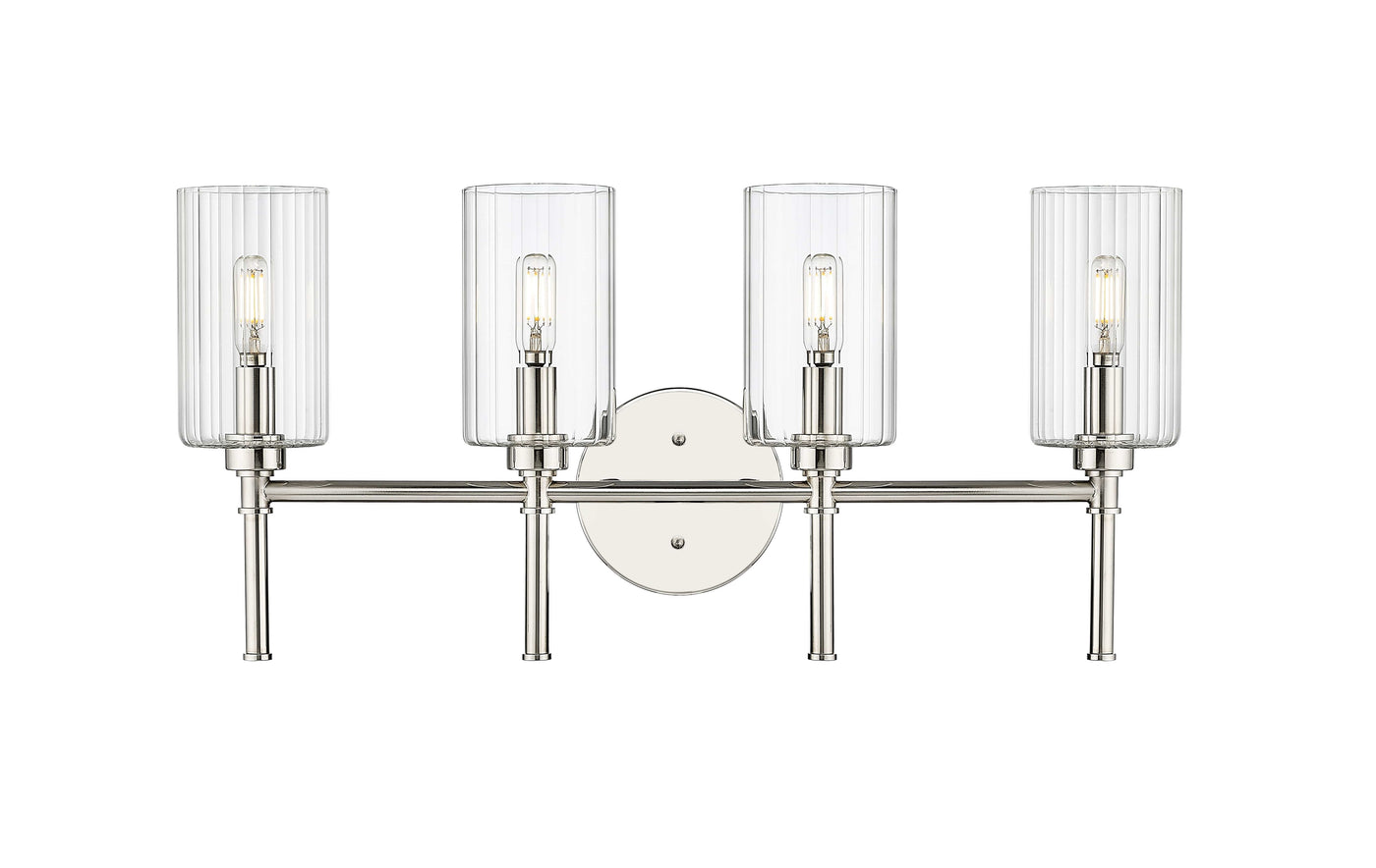 4 Lamps Chastine Vanity Light - Polished Nickel - Clear Beveled Glass - 25.5in. Wide