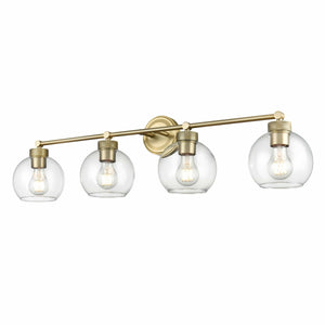4 Lamps Jonatan Vanity Light - Vintage Brass - Clear Glass - 35in. Wide