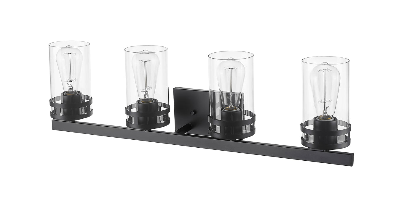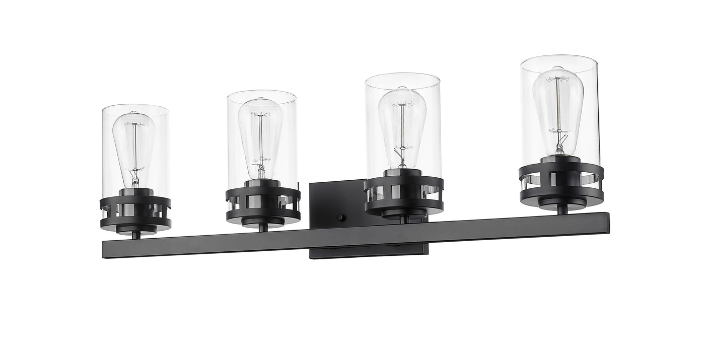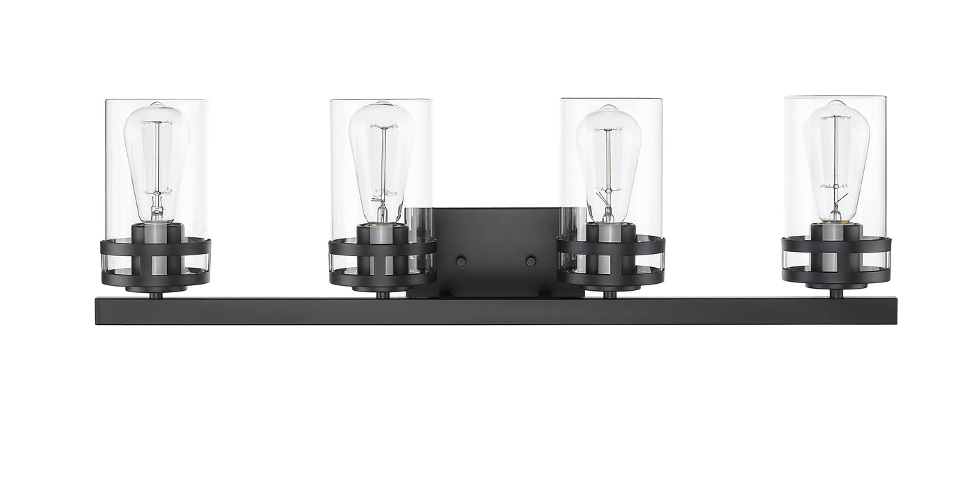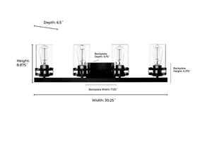 4 Lamps Lunden Vanity Light - Matte Black - Clear Glass - 30.25in. Wide
