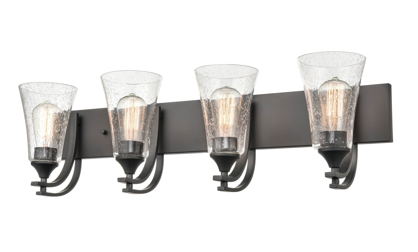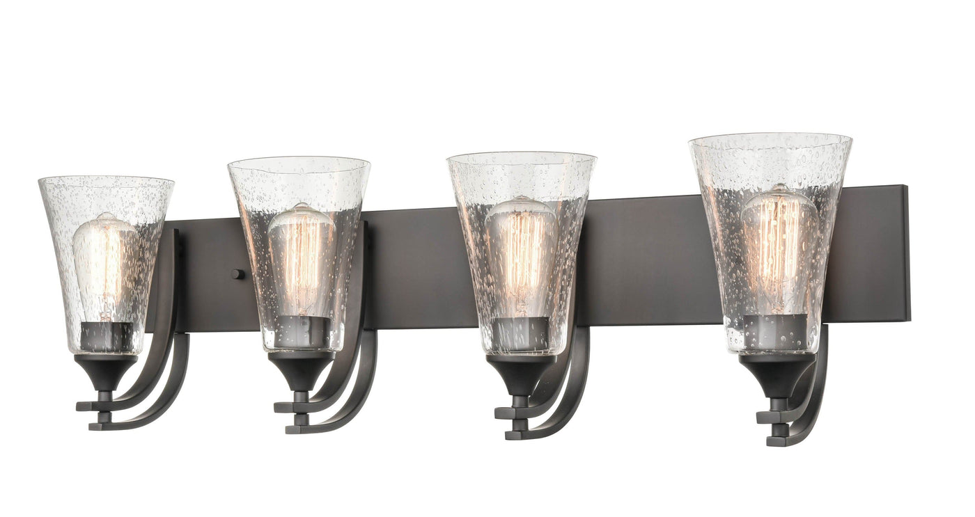 4 Lamps Natalie Vanity Light - Matte Black - Clear Seeded Glass - 32in. Wide