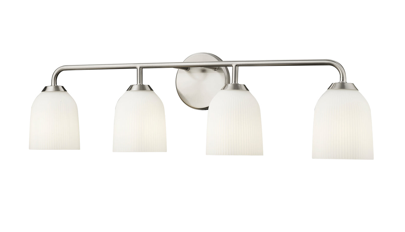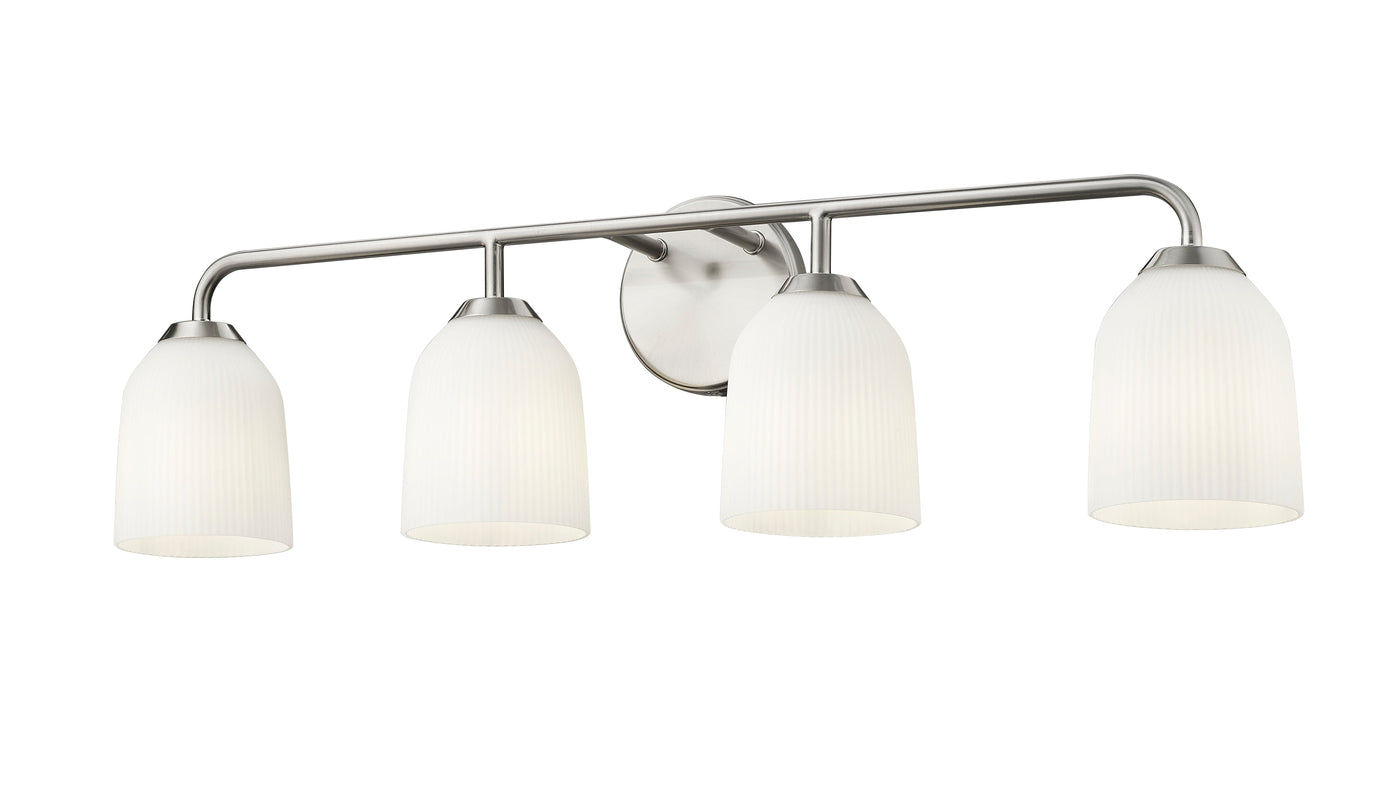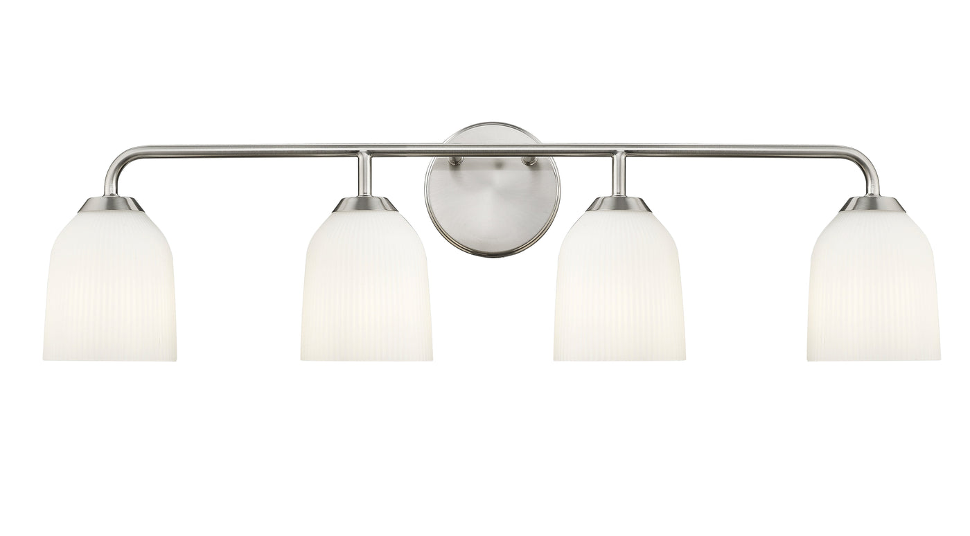 4 Lamps Norah Vanity Light - Brushed Nickel - Opal Ribbed Glass - 32in. Wide