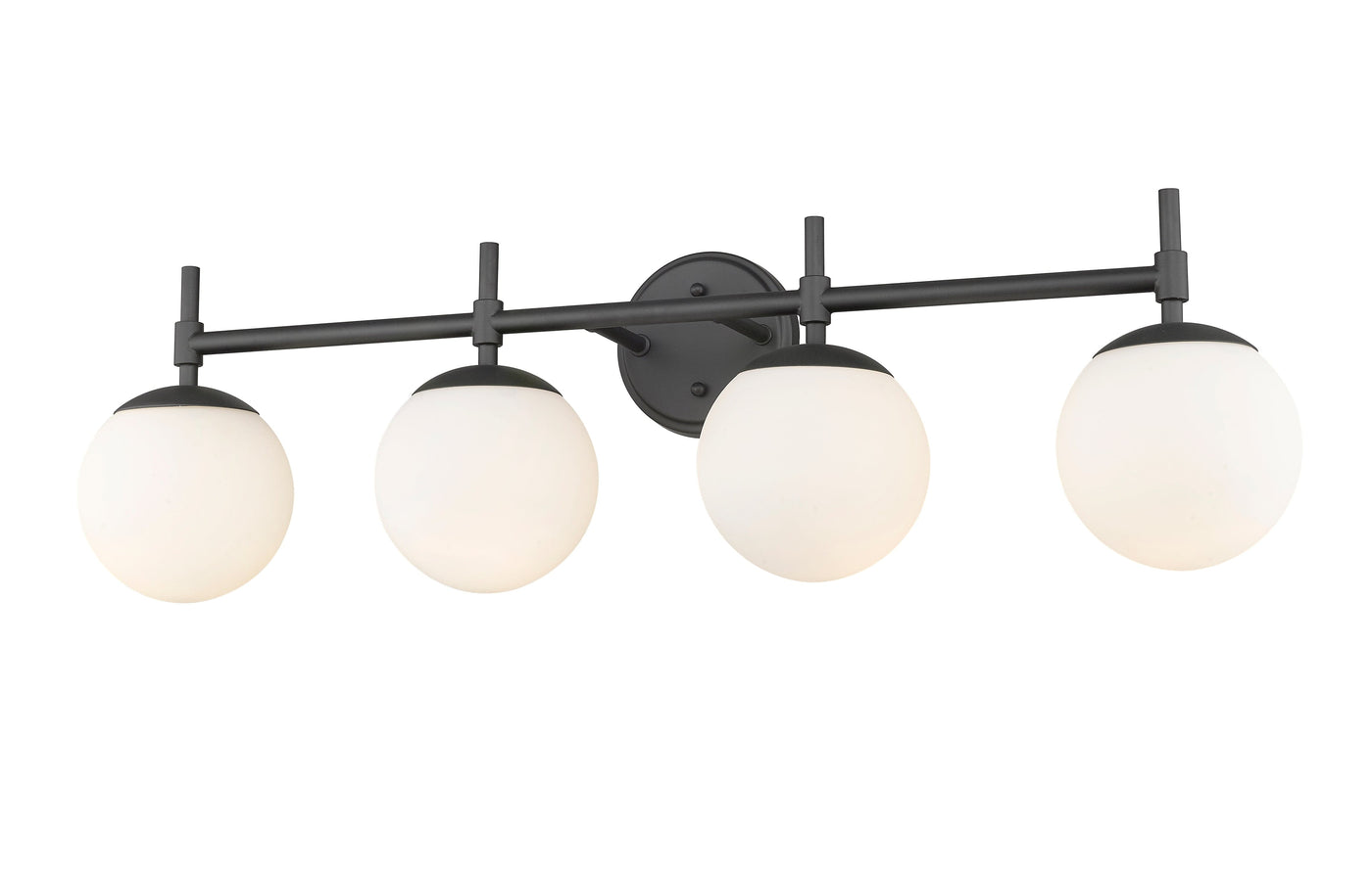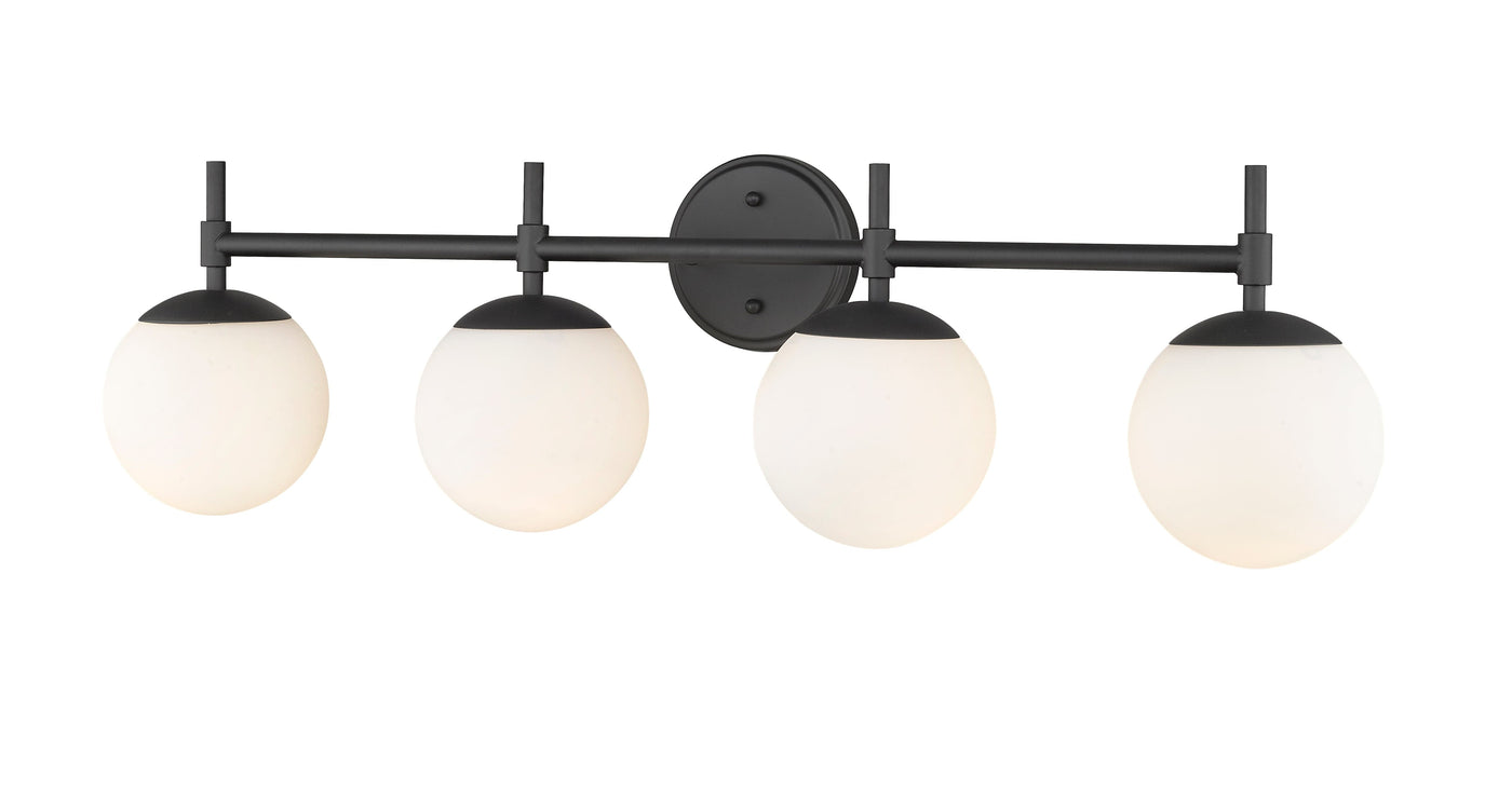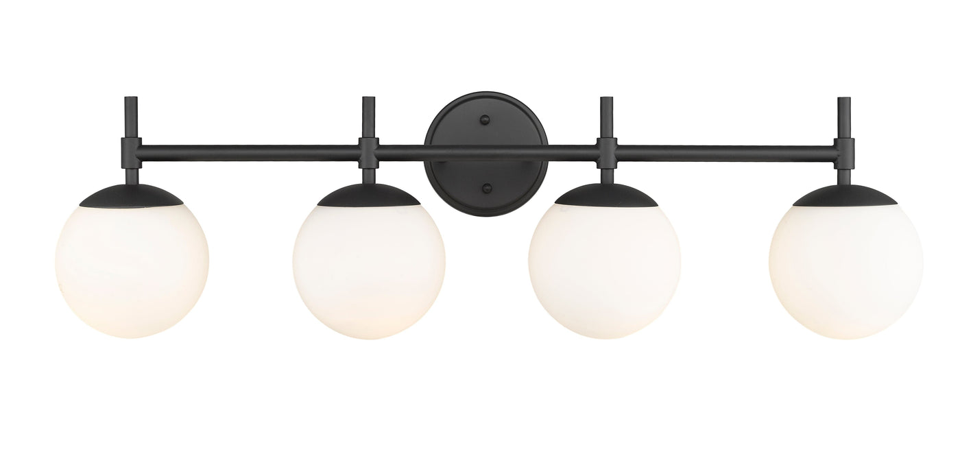 4 Lamps Redondo Vanity Light - Matte Black - Opal Glass - 33in. Wide