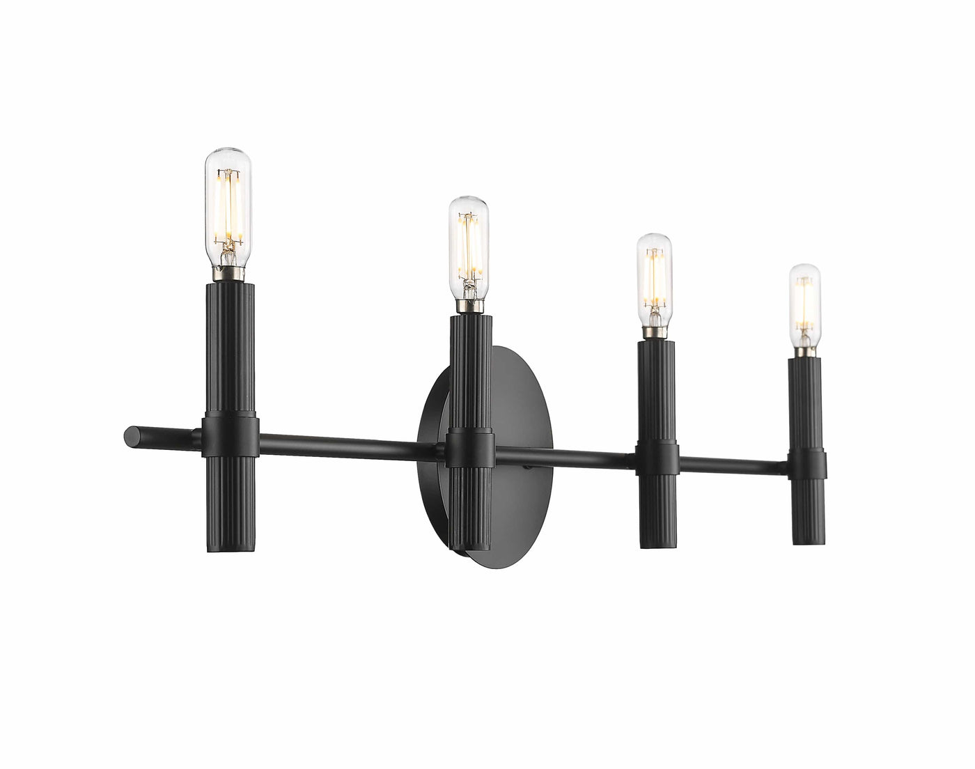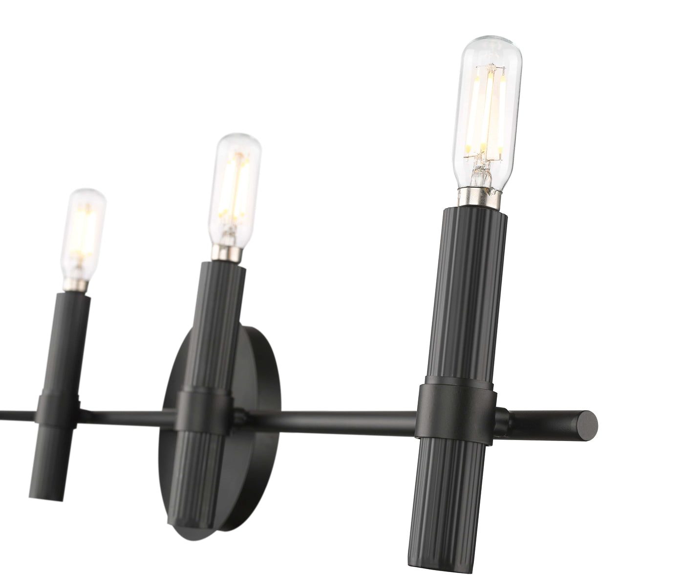 Combining Mid-Century design with sleek and linear Scandinavian simplicity, the fixtures are finished in matte black and feature tubular shaped candles for an electrifying twist.