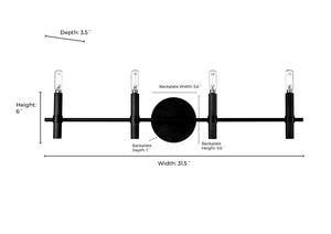 4 Lamps Skyva Vanity Light - Matte Black - Glass - 31.5in. Wide