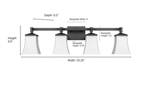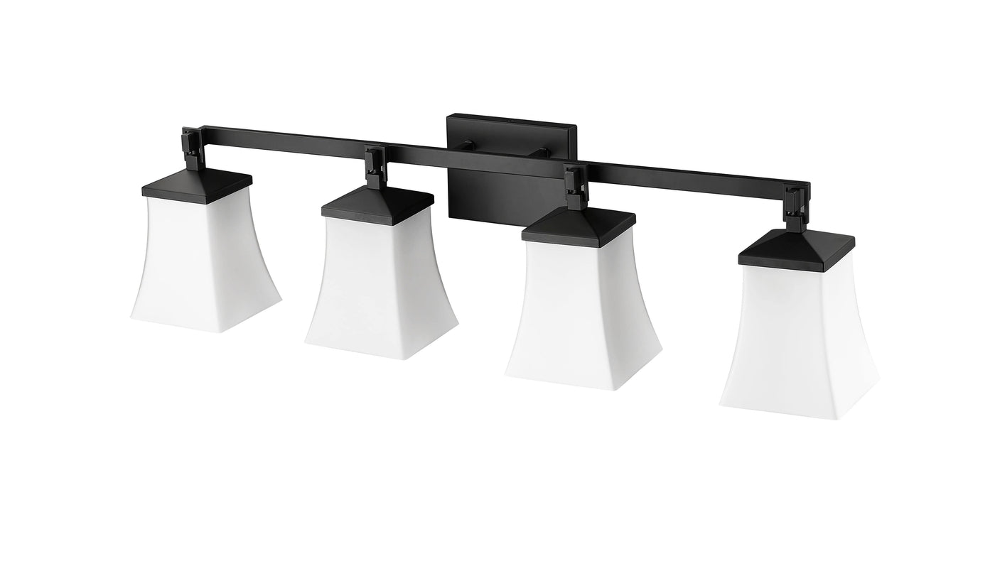 4 Lamps Sonorra Vanity Light - Matte Black - Opal White Glass - 33.25in. Wide