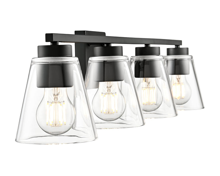 4 Lamps Strayhan Vanity Light - Matte Black - Clear Glass - 31in. Wide