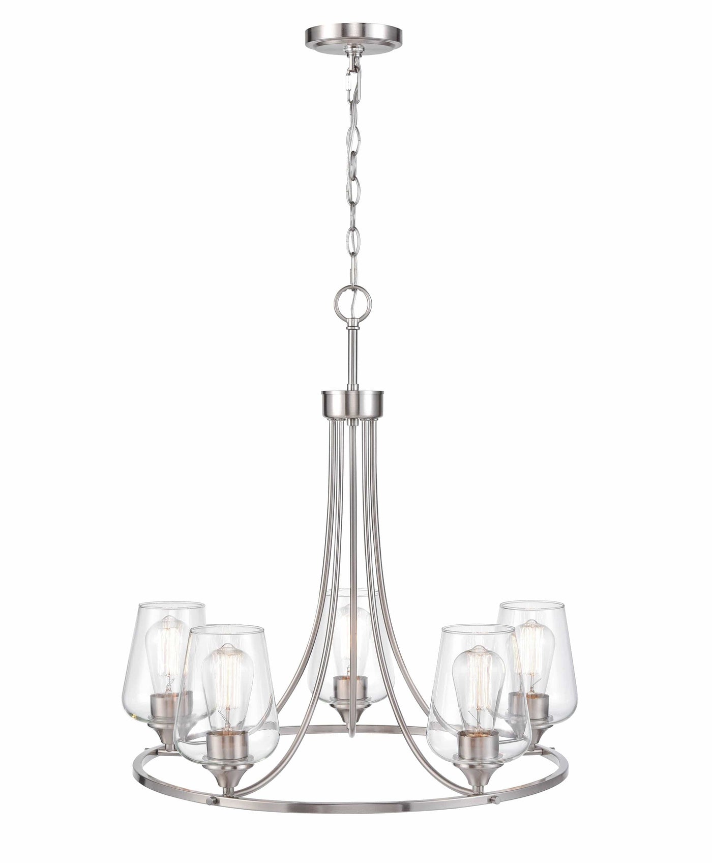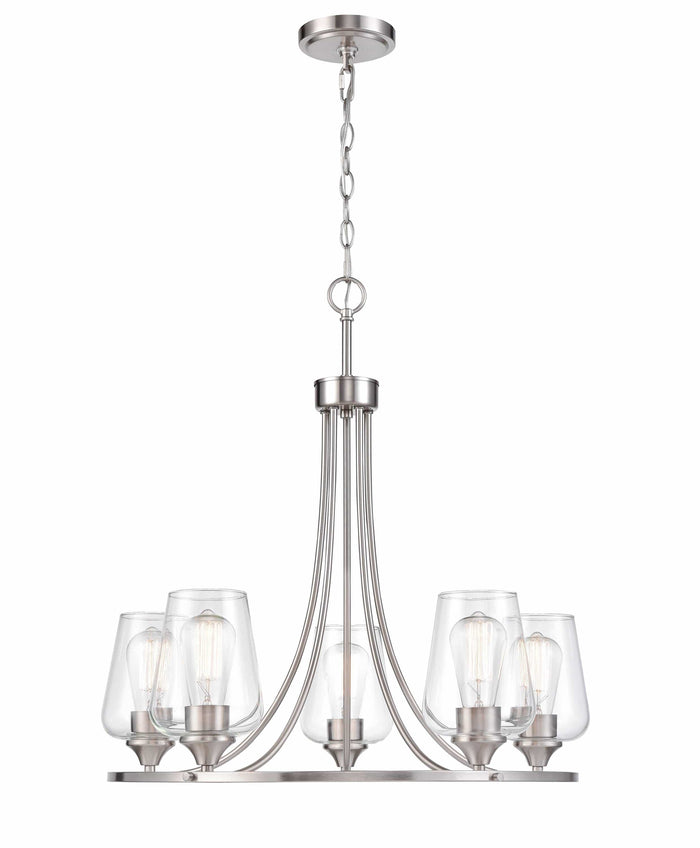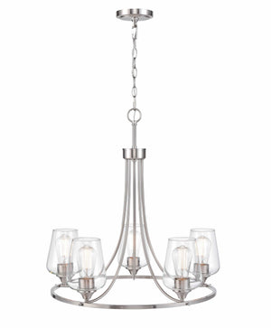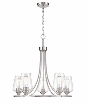 5 Lamps Ashford Chandelier - Brushed Nickel - Clear Glass - 25in Diameter - E26 Medium Base