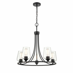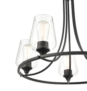 5 Lamps Ashford Chandelier - Matte Black - Clear Glass - 25in Diameter - E26 Medium Base