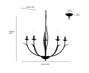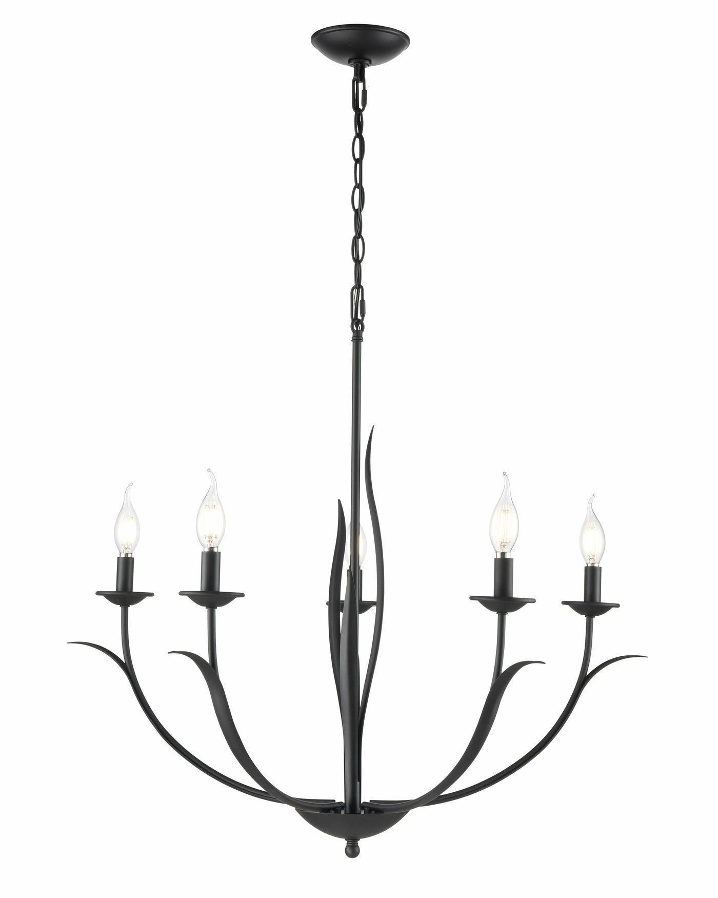 5 Lamps Charlize Chandelier - Matte Black - Glass - 29.5in Diameter - E12 Candelabra Base