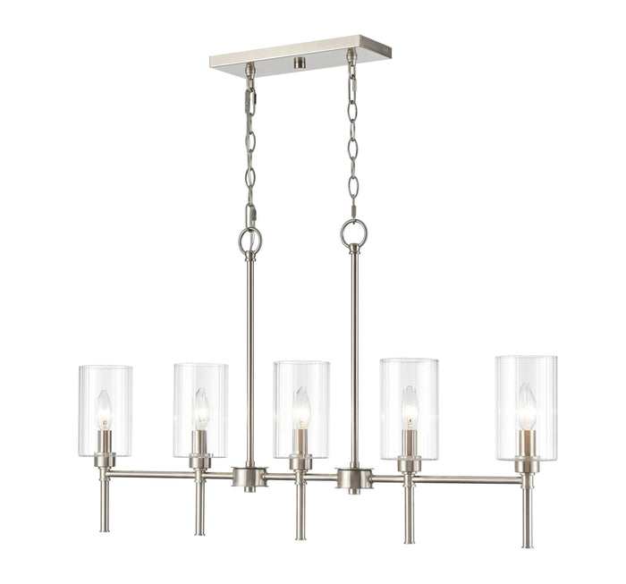 5 Lamps Chastine Island Chandelier - Brushed Nickel Finish - Clear Beveled Glass - 36in Diameter - E12 Candelabra Base