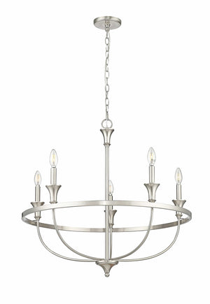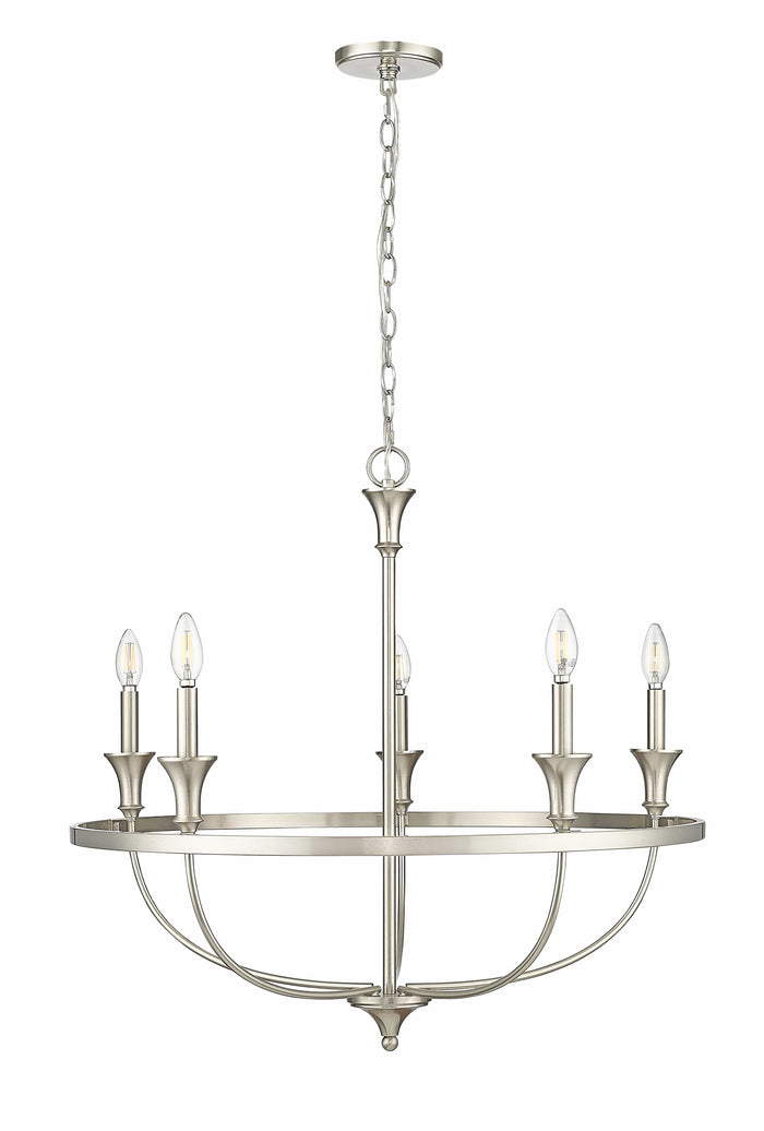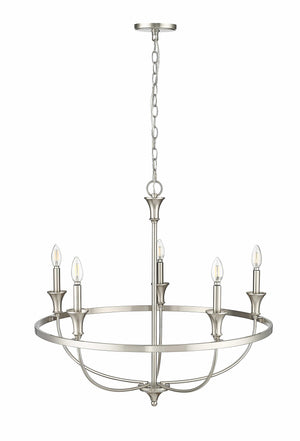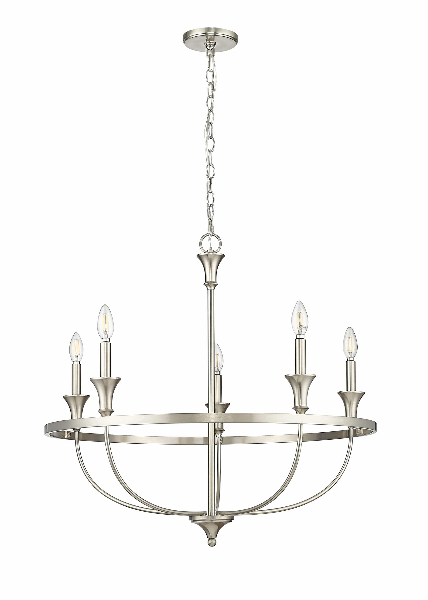5 Lamps Emery Chandelier - Brushed Nickel - 29.1in Diameter - E12 Candelabra Base