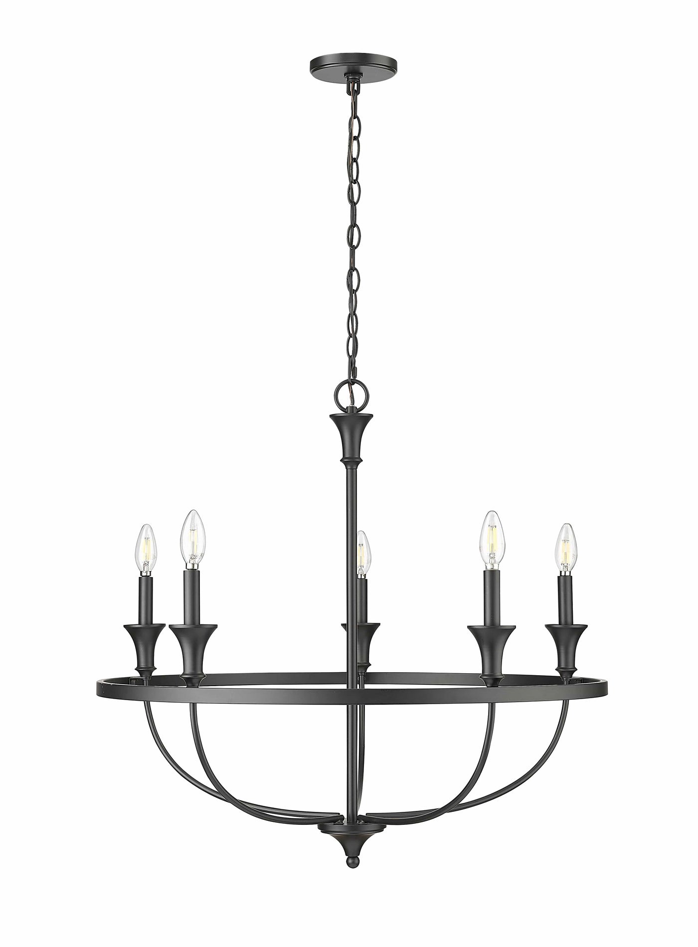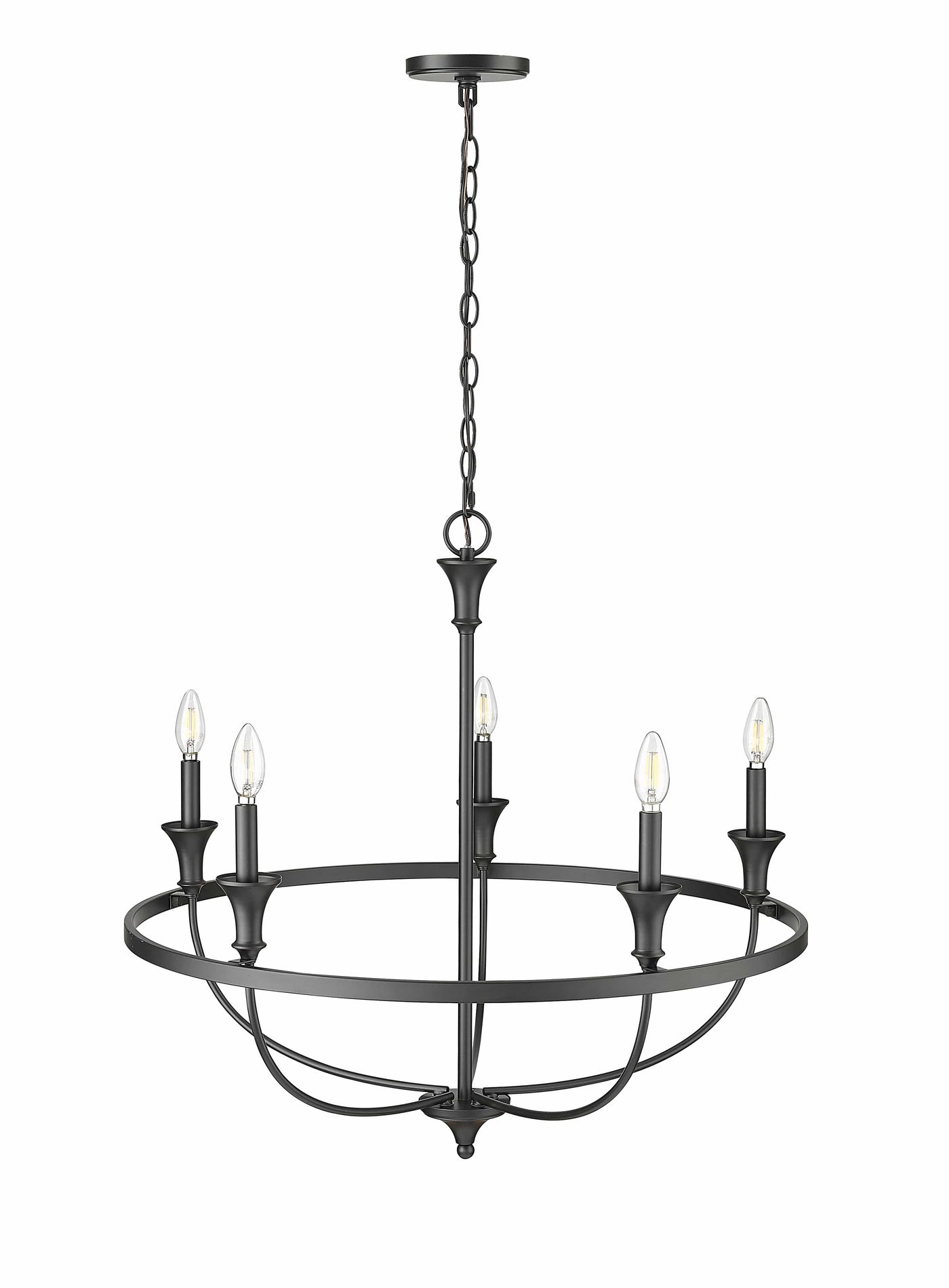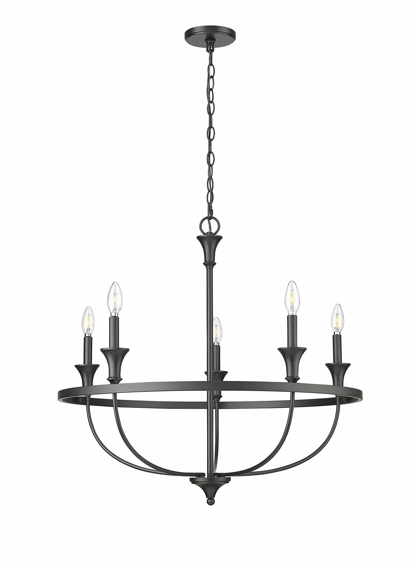 5 Lamps Emery Chandelier - Matte Black - 29.1in Diameter - E12 Candelabra Base