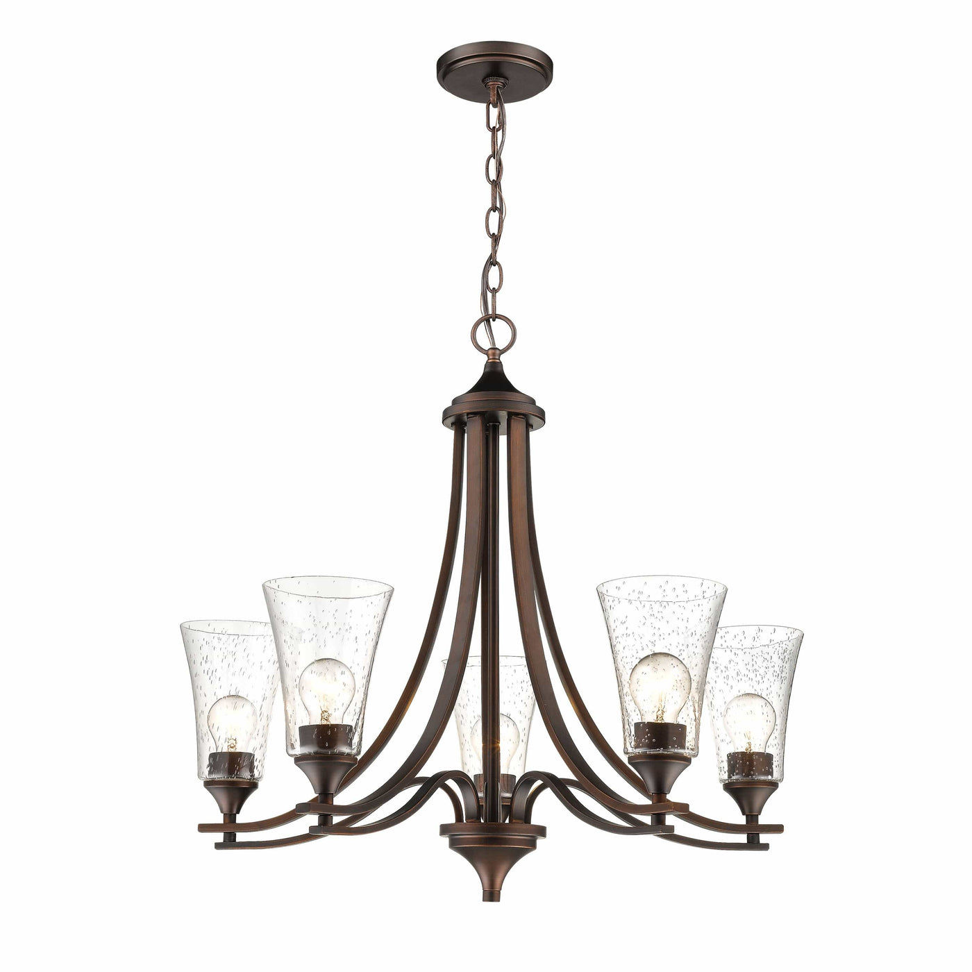 5 Lamps Natalie Chandelier - Rubbed Bronze - Clear Seeded Glass - 27.75in Diameter - E26 Medium Base