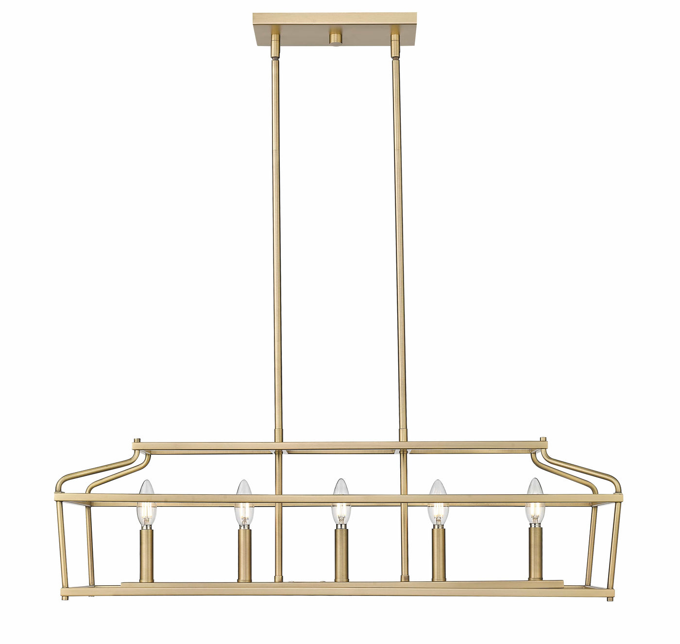 A fresh combination of traditional lines juxtaposed against a modern aesthetic, the fixtures are available as 4- or 5-light lanterns, 5-light island, and 4-light pendant.
