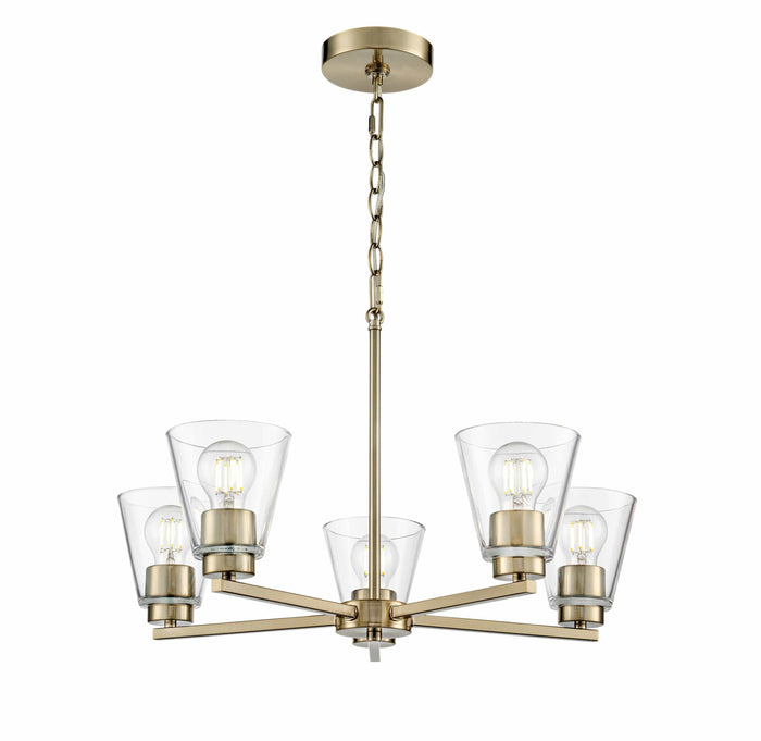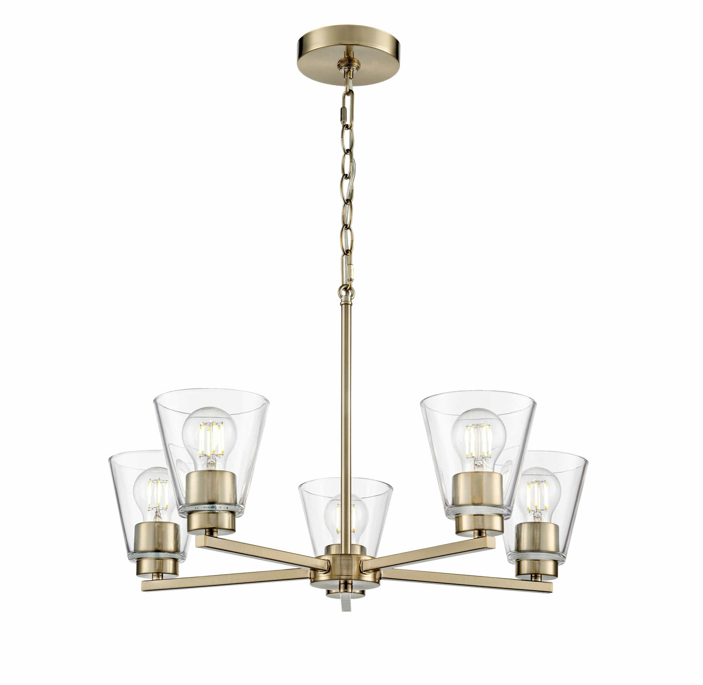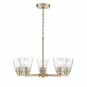5 Lamps Strayhan Chandelier - Modern Gold - Clear Glass - 24in Diameter - E26 Medium Base