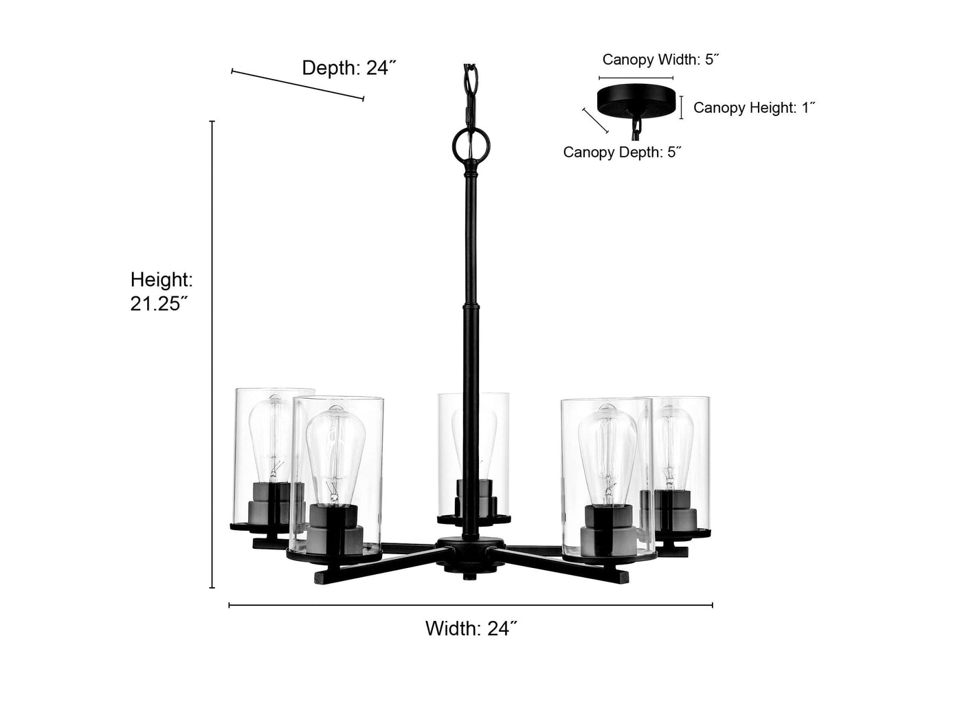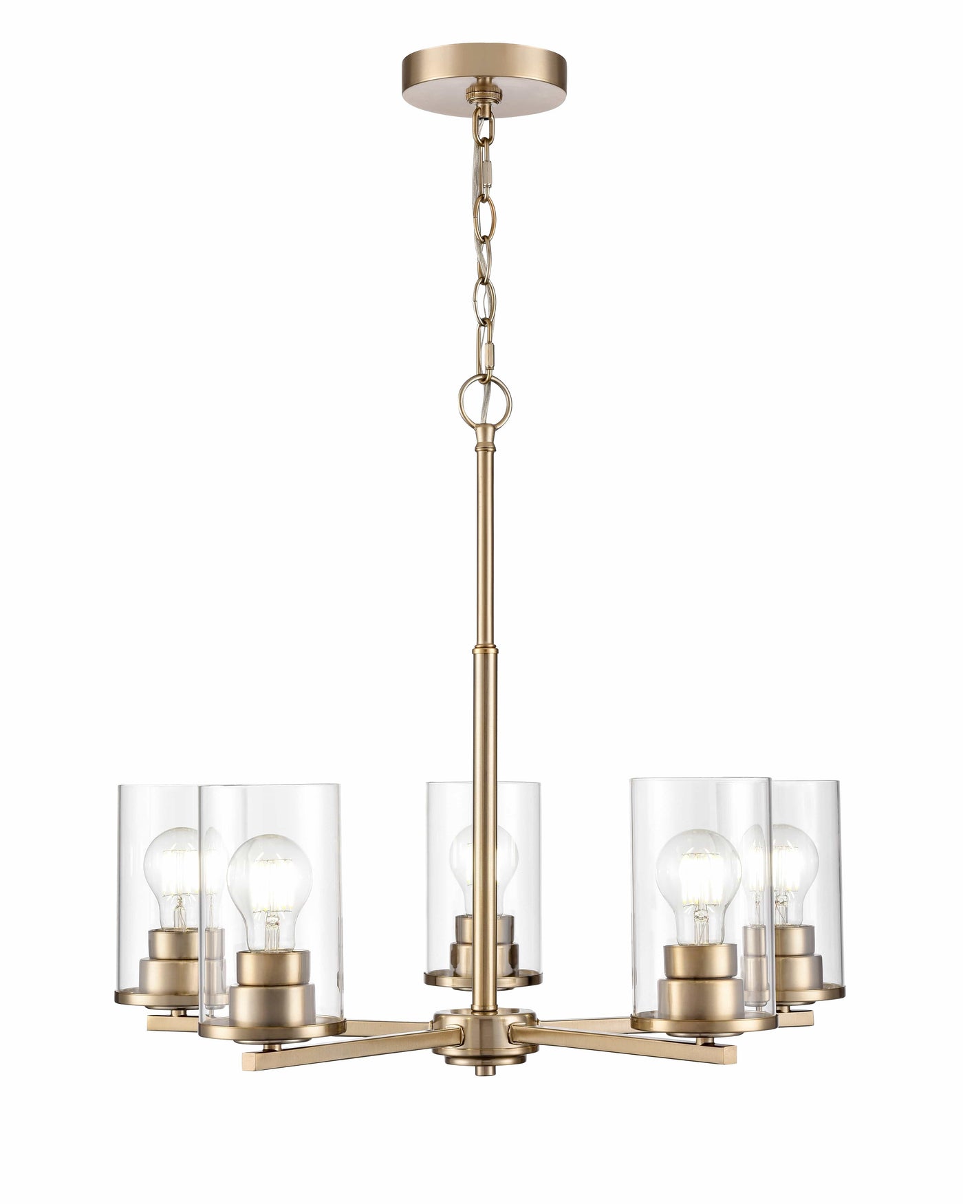 5 Lamps Verlana Chandelier - Modern Gold - Clear Glass - 24in Diameter - E26 Medium Base