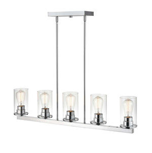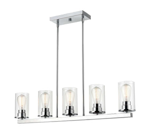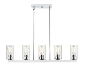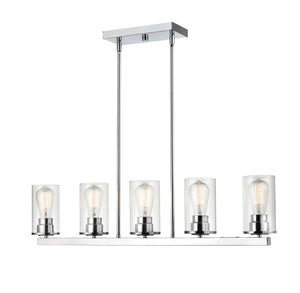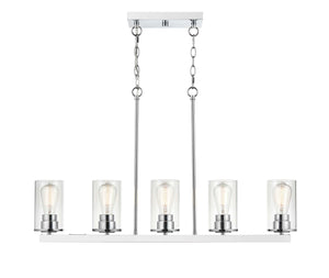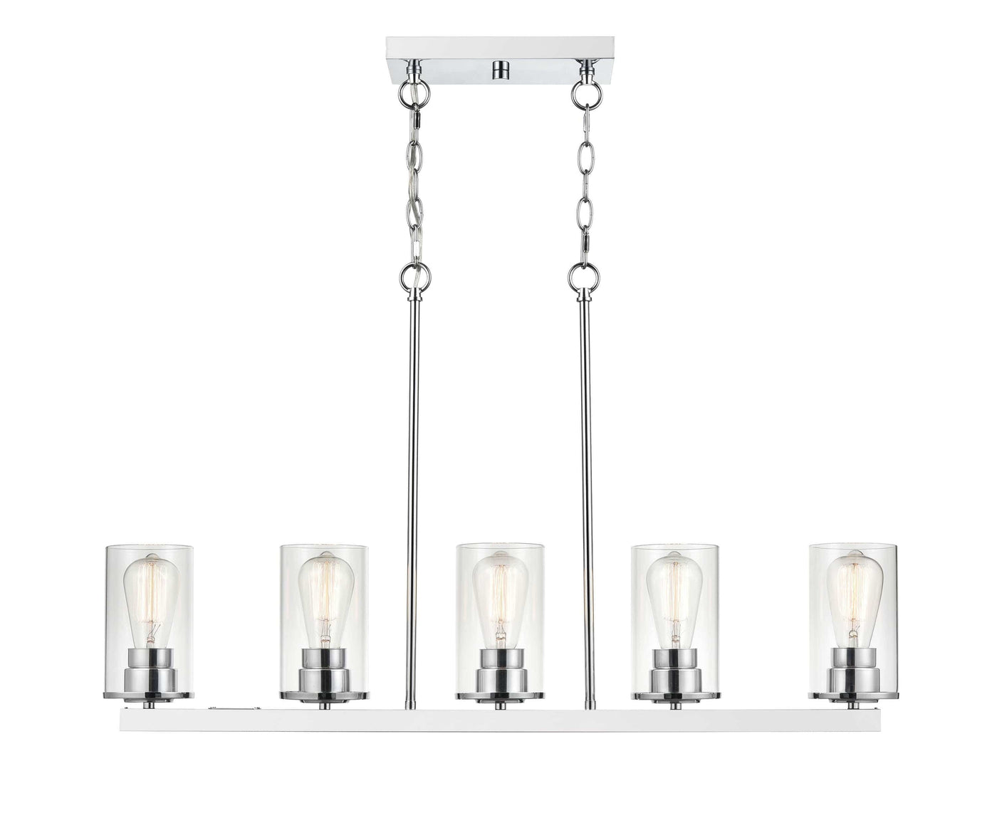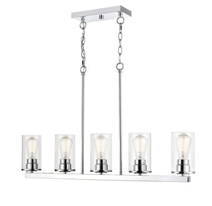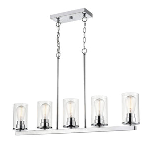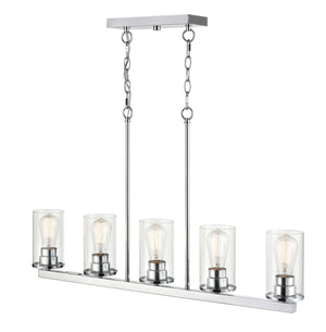 5 Lamps Verlana Island Chandelier - Chrome - Clear Glass - 35in Diameter - E26 Medium Base