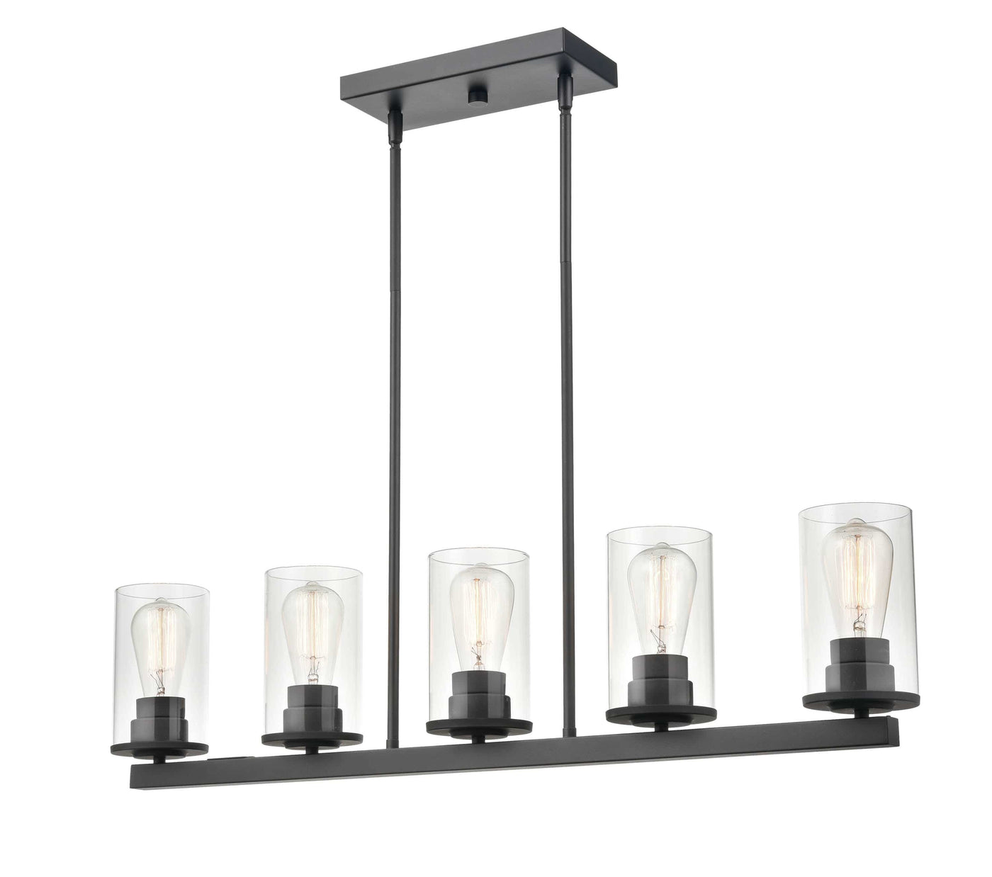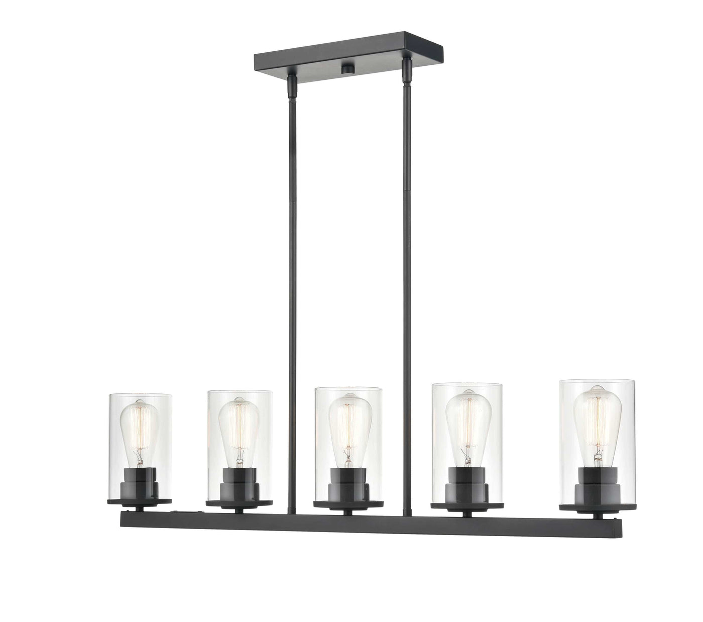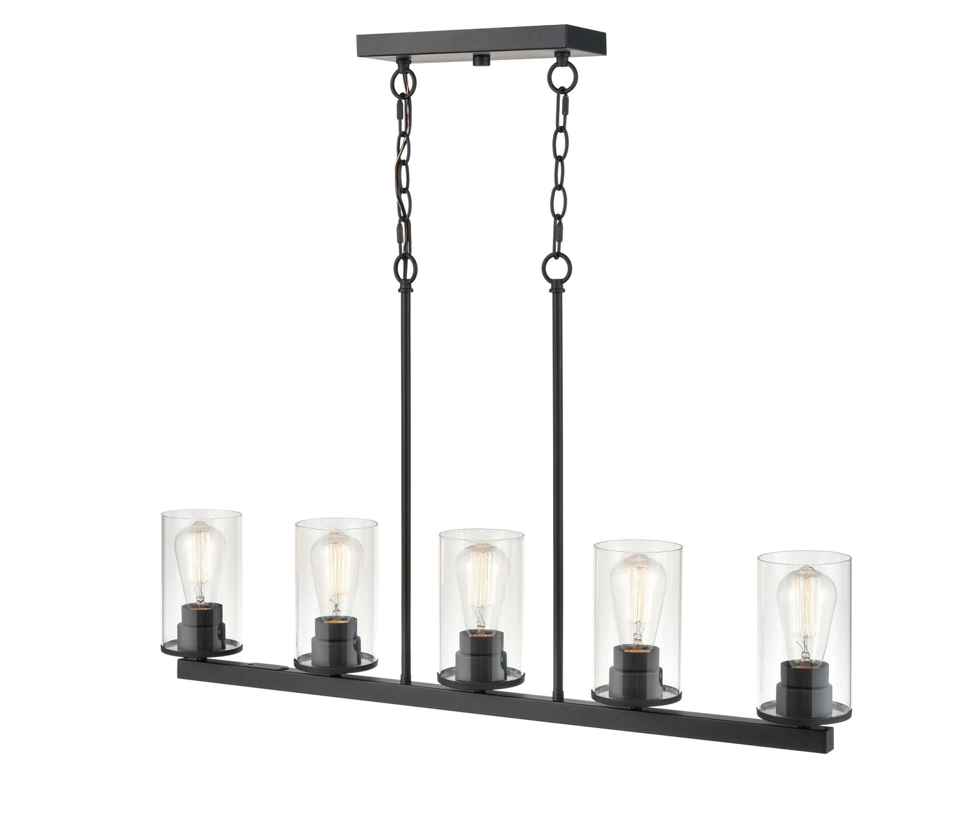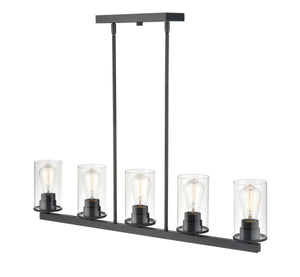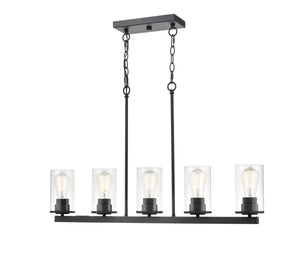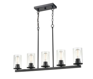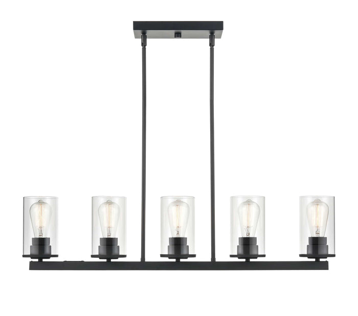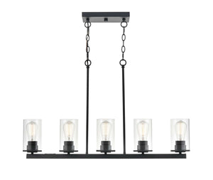 5 Lamps Verlana Island Chandelier - Matte Black - Clear Glass - 35in Diameter - E26 Medium Base