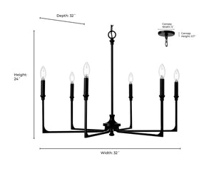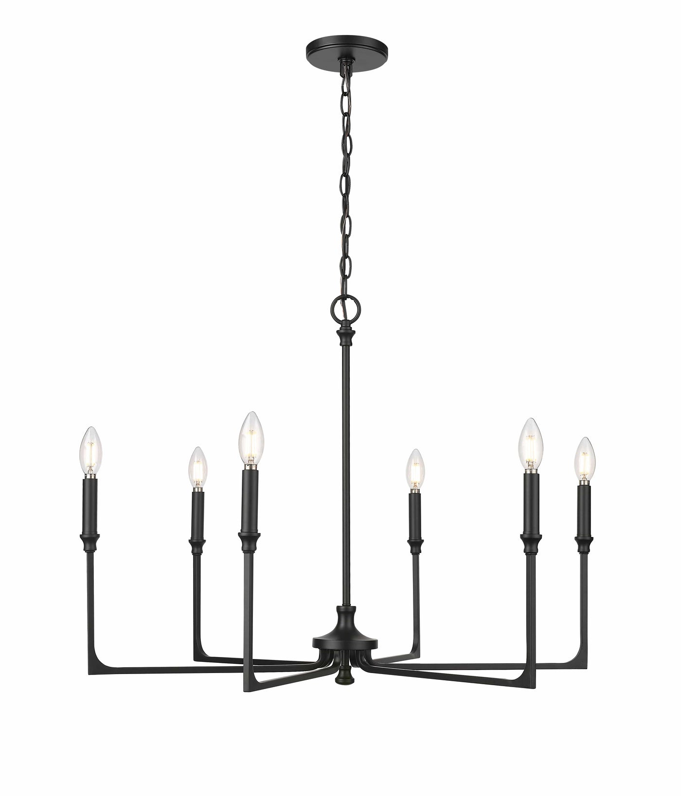6 Lamps Azara Chandelier - Matte Black - Glass - 32in Diameter - E12 Candelabra Base