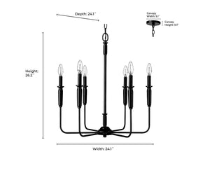6 Lamps Savanne Chandelier - Matte Black - 24.1in Diameter - E12 Candelabra Base