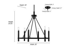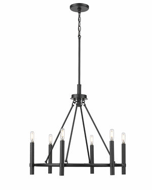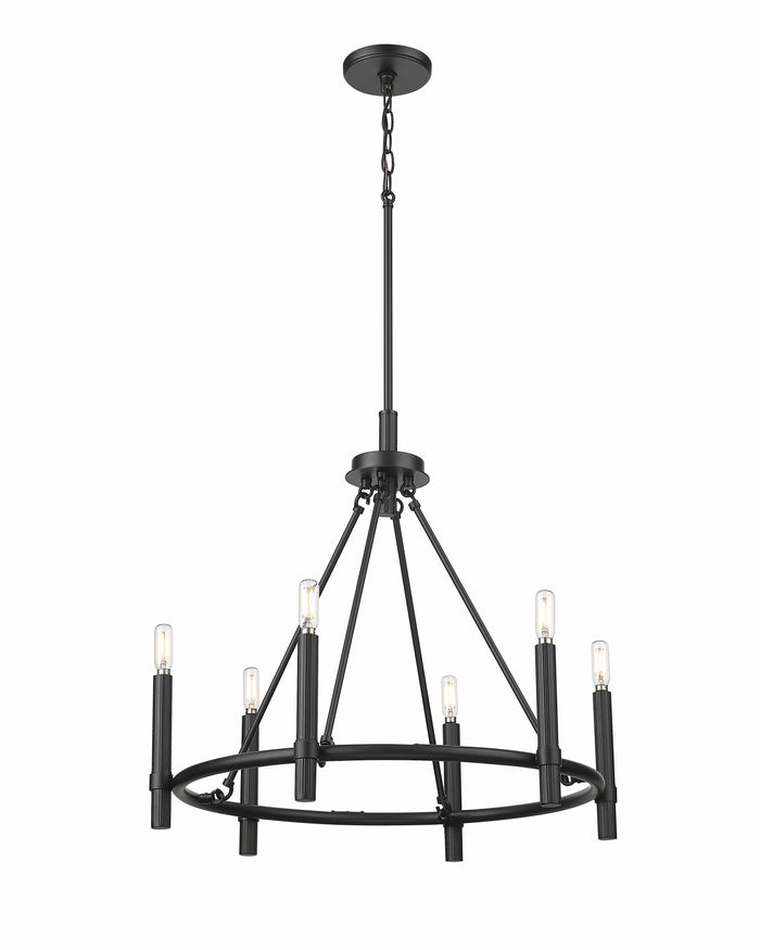 6 Lamps Skyva Chandelier - Matte Black - Glass - 25in Diameter - E12 Candelabra Base