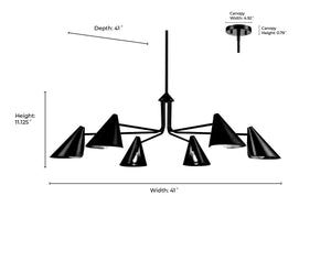 6 Lamps Warhol Chandelier - Matte Black - 41in Diameter - E12 Candelabra Base