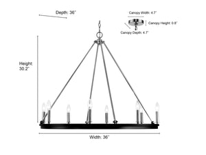 Striking the perfect balance of exquisite metalwork and modern lighting needs, the Carruth Family recalls traditional iron chandelier designs in an elegant wagon wheel style.