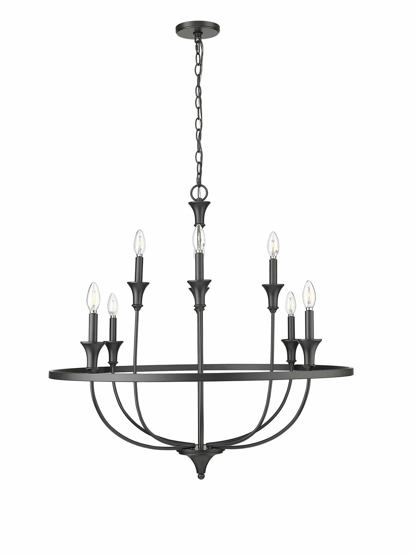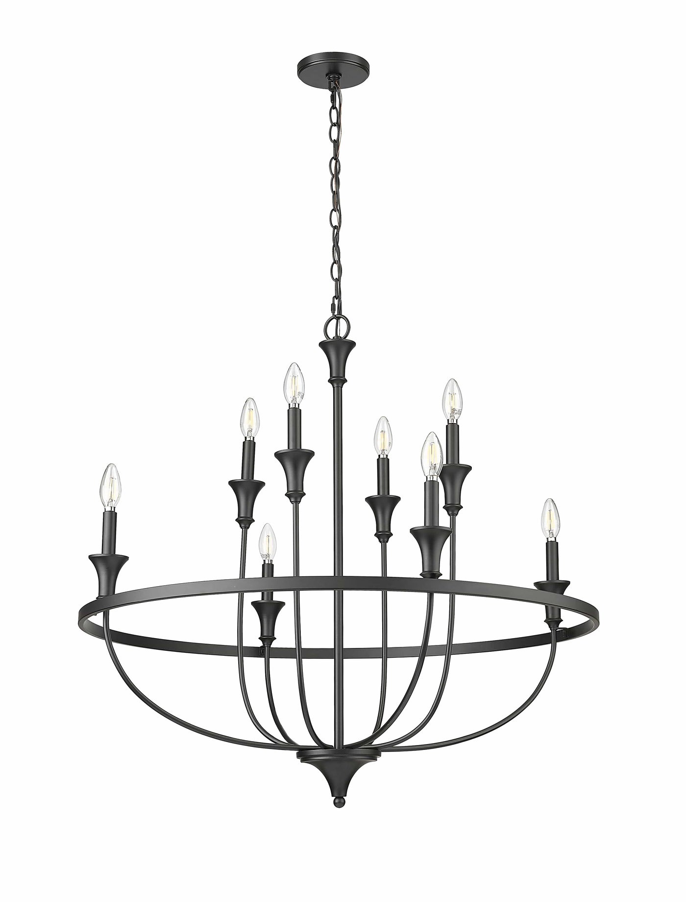 8 Lamps Emery Chandelier - Matte Black - 33.5in Diameter - E12 Candelabra Base