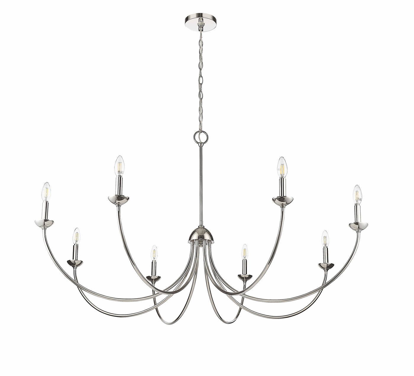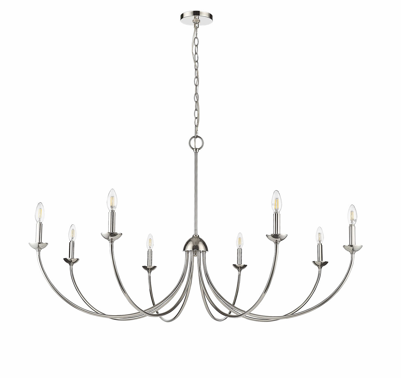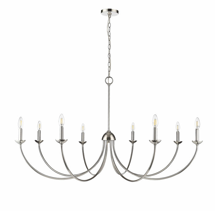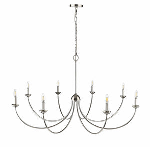 8 Lamps Huxley Chandelier - Polished Nickel - 52in Diameter - E12 Candelabra Base